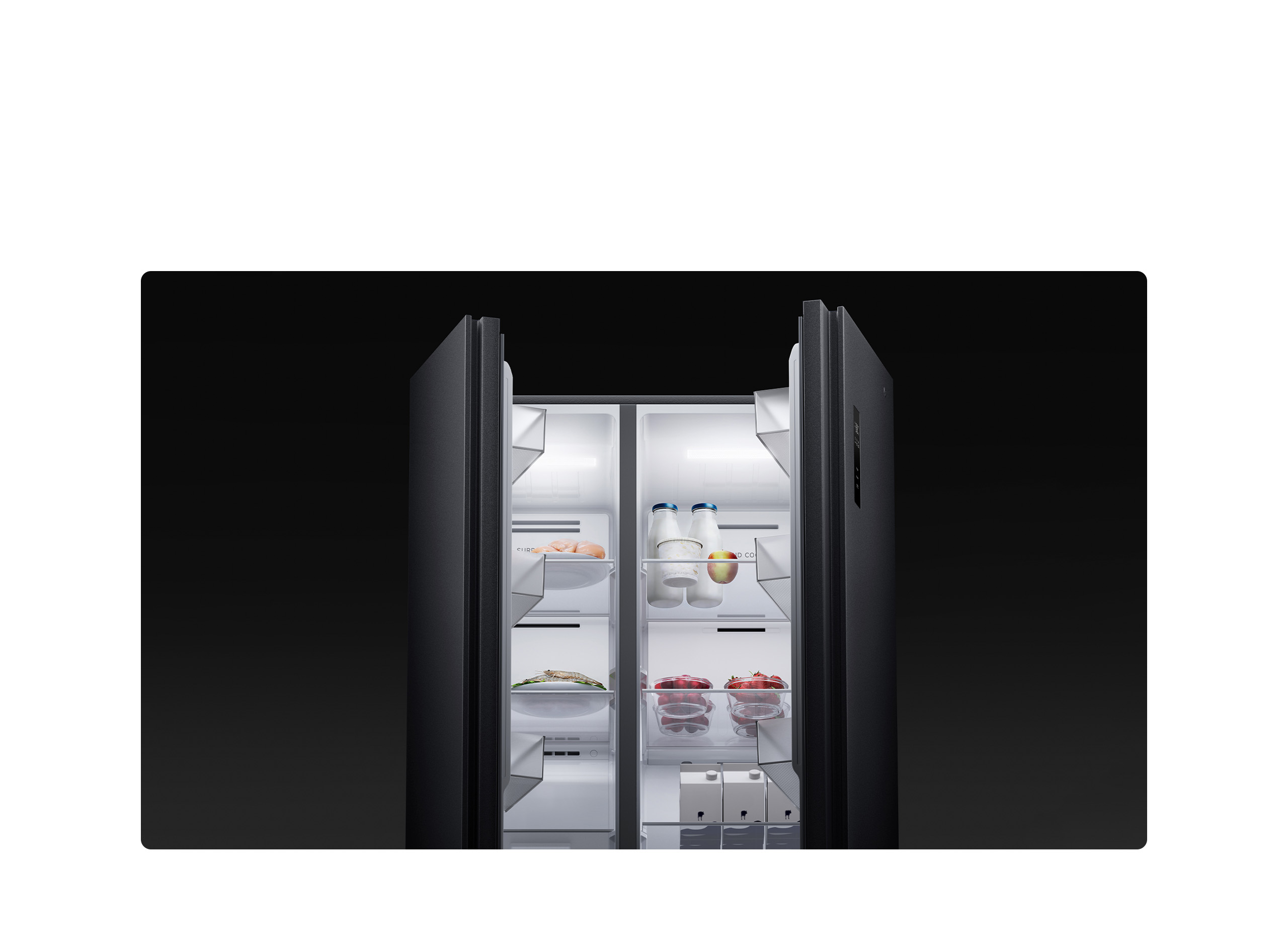 Dengan kapasitas 394L ruang pendingin dan 241L ruang pembeku, Mijia Refrigerator Side-by-Side 635L menghadirkan ruang penyimpanan luas untuk berbagai jenis dan ukuran bahan makanan.