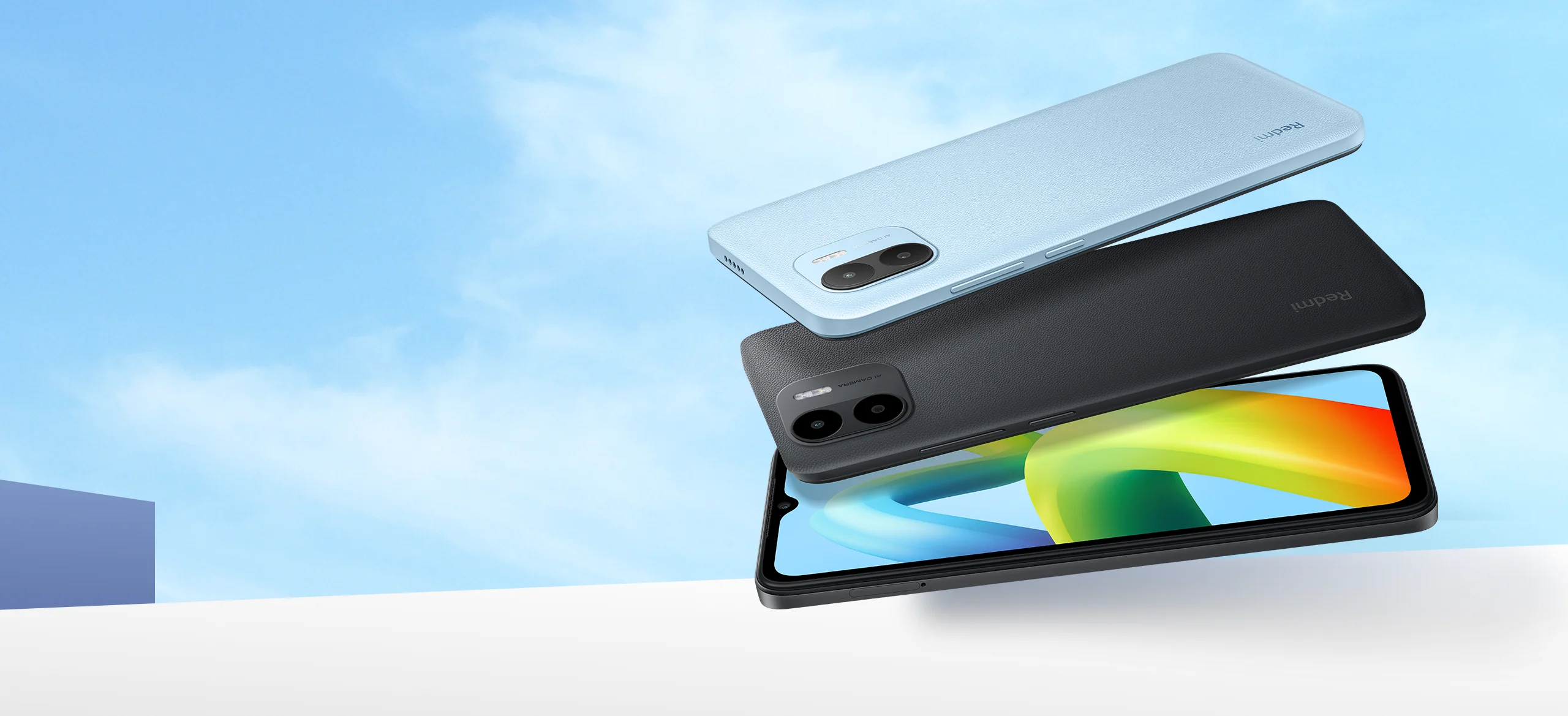 Redmi A1 memiliki desain bingkai datar trendi yang tersedia dalam nuansa warna hitam dan biru yang menyejukkan. Panel bagian belakang yang bertekstur memiliki tampilan premium yang tahan dari noda sidik jari dan nyaman digenggam dalam waktu lama.