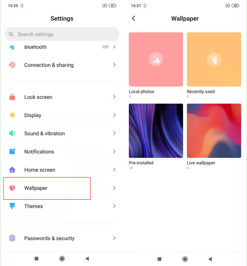 Metode pengaturan khusus: Pengaturan>> Wallpaper, pilih "Wallpaper".
