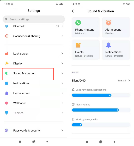 Metode pengaturan khusus: Pengaturan>> Suara & Getaran, pilih "suara".