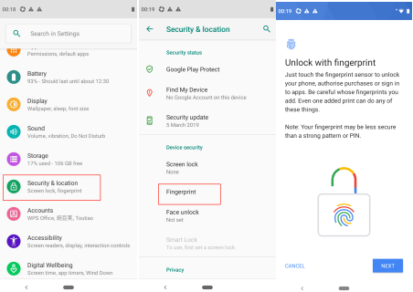 Metode pengaturan khusus: Pengaturan >> Keamanan &; lokasi >> Sidik Jari, pilih Sidik Jari.