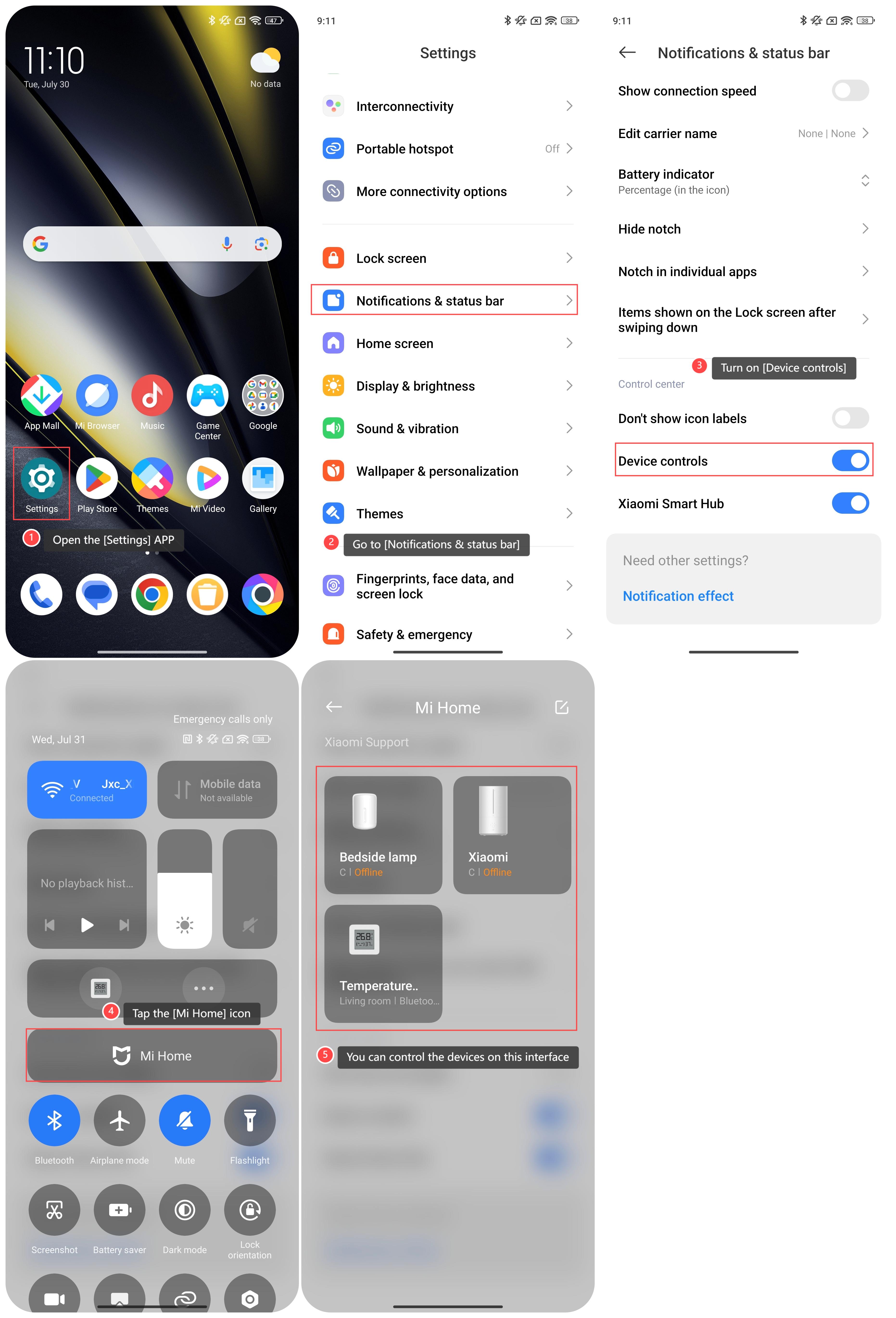 Untuk menggunakan Xiaomi Home APP di Pusat Kontrol, silakan lihat langkah-langkah berikut: