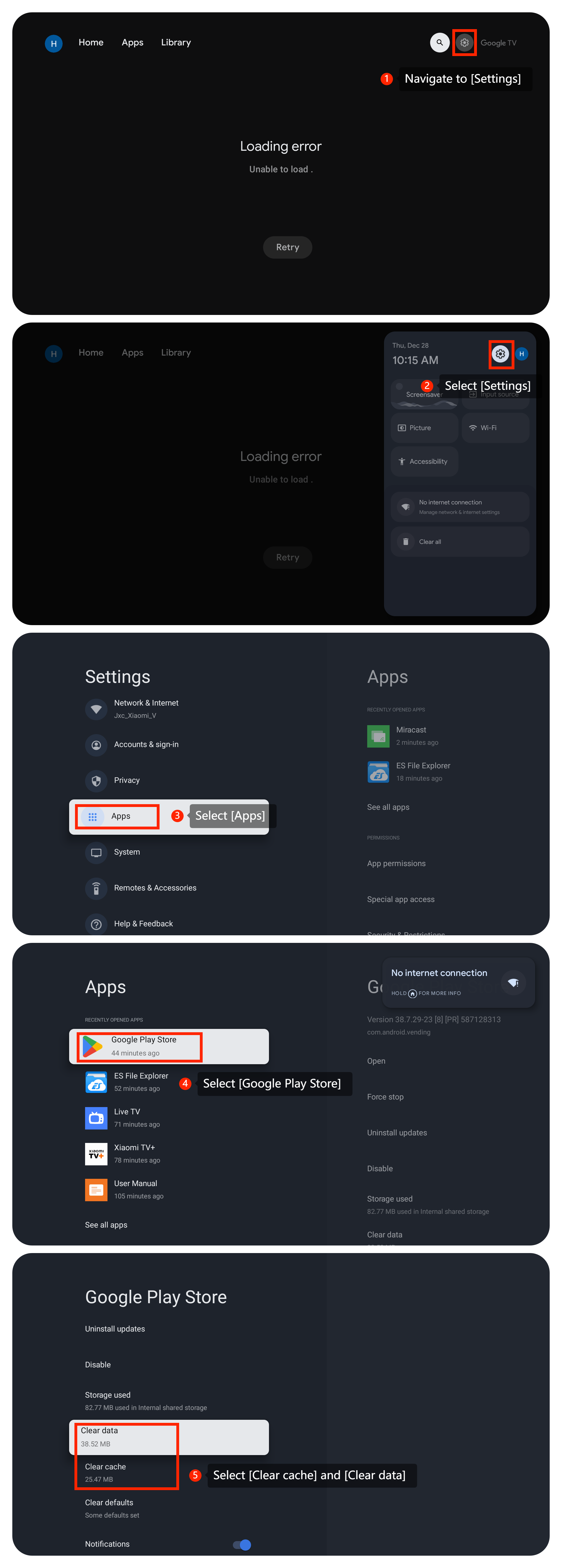 3. Arahkan ke [Pengaturan] >> [Aplikasi]>>pilih [Google Play Store]>> pilih [Hapus cache] dan [Hapus data];