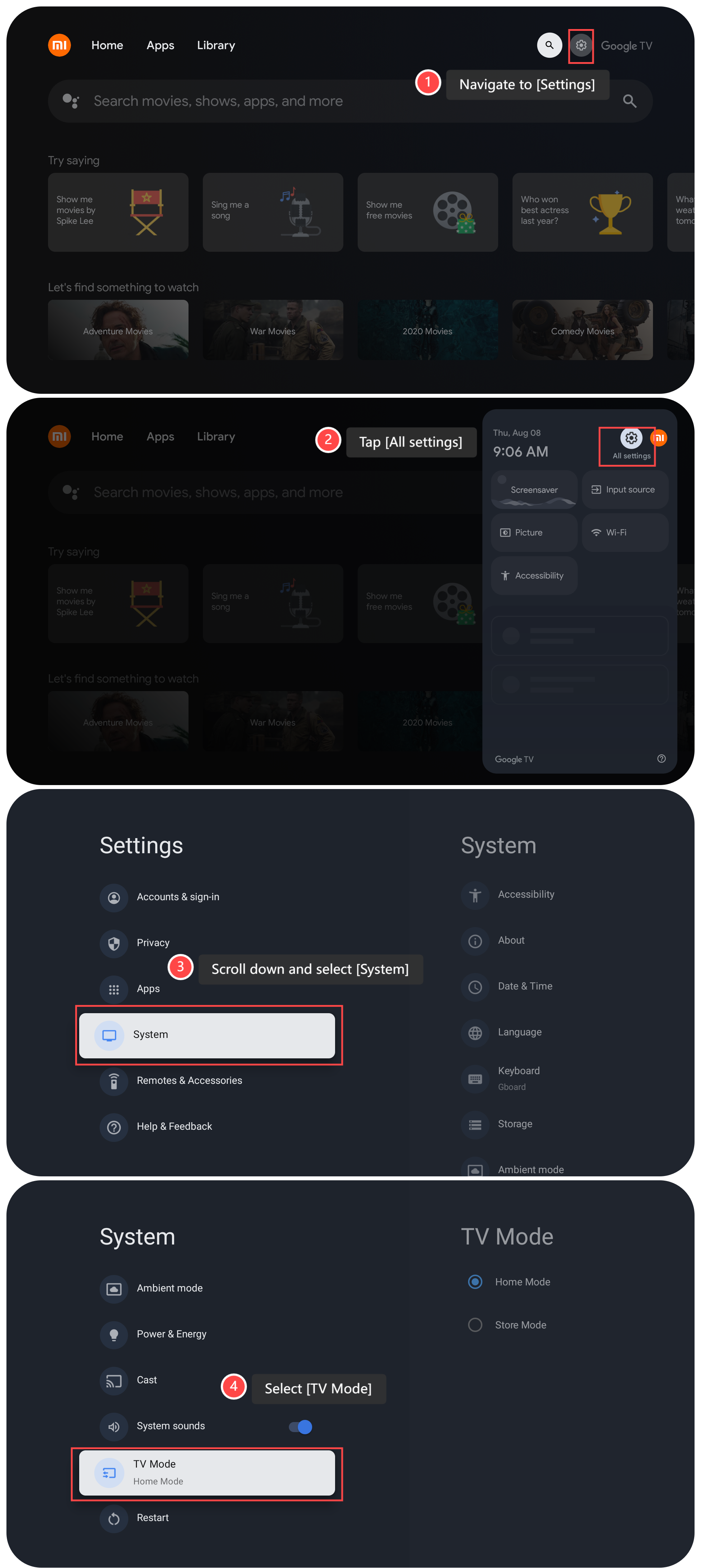 Untuk masuk ke Mode Toko di TV Anda, silakan lihat langkah-langkah berikut: