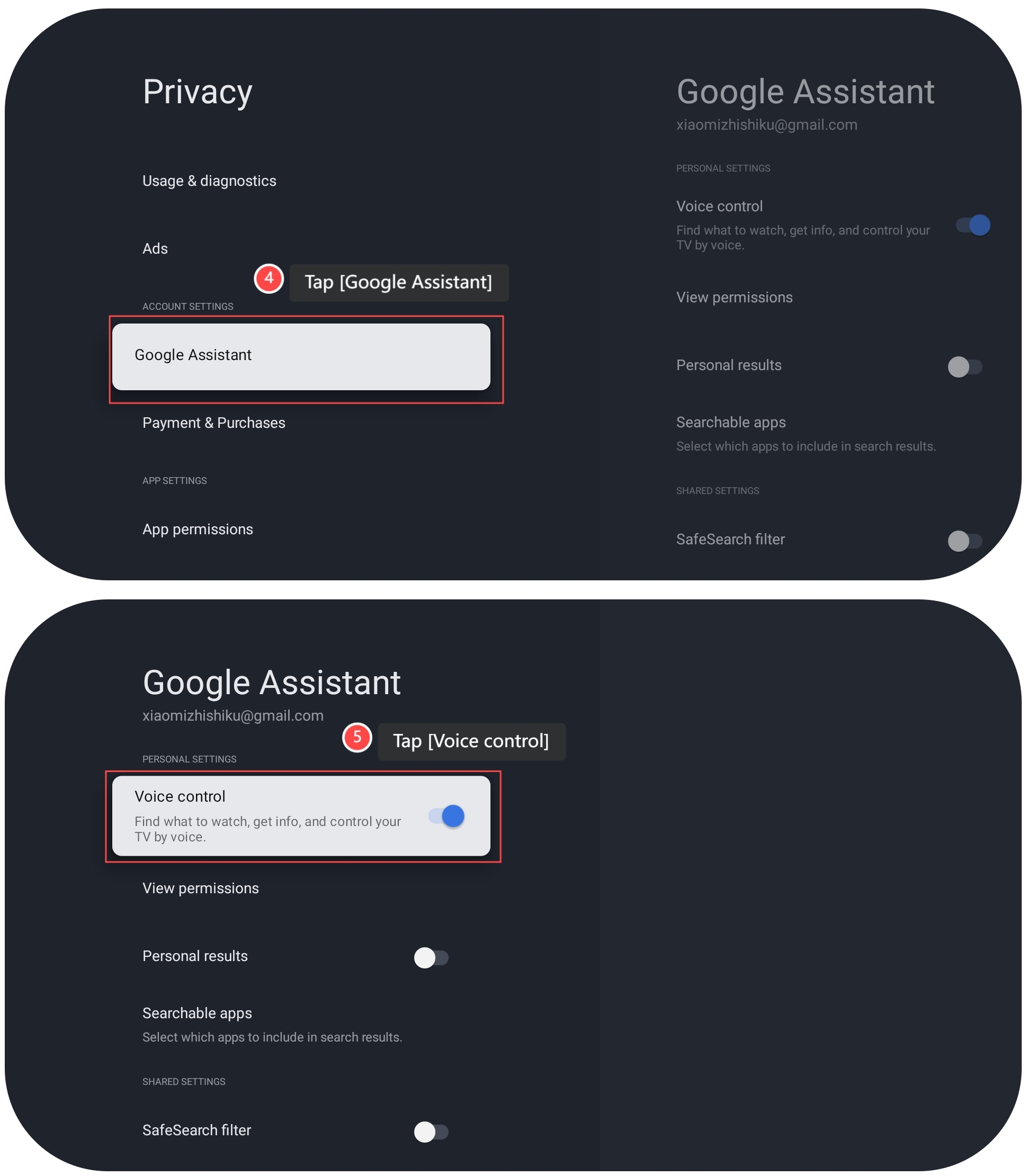 4. Ketuk [Asisten Google]; 5. Ketuk [Kontrol suara], dan Anda dapat mengontrol volume melalui perintah suara Anda.