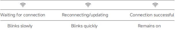 Saat indikator Wi-Fi berkedip perlahan, statusnya sedang menunggu koneksi. Saat indikator Wi-Fi berkedip cepat, statusnya sedang terhubung kembali atau diperbarui. Saat indikator Wi-Fi tetap menyala, statusnya adalah koneksi berhasil.