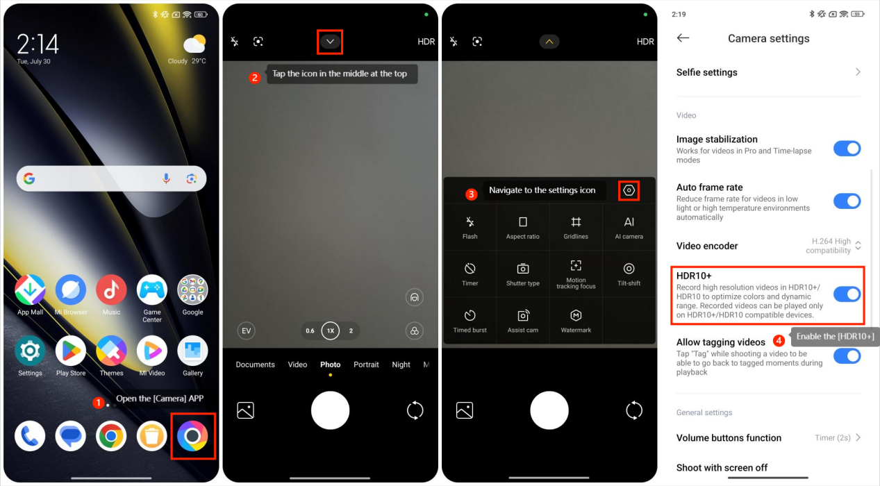 4.Aktifkan [HDR10+] untuk menggunakan fitur ini dalam mode video.