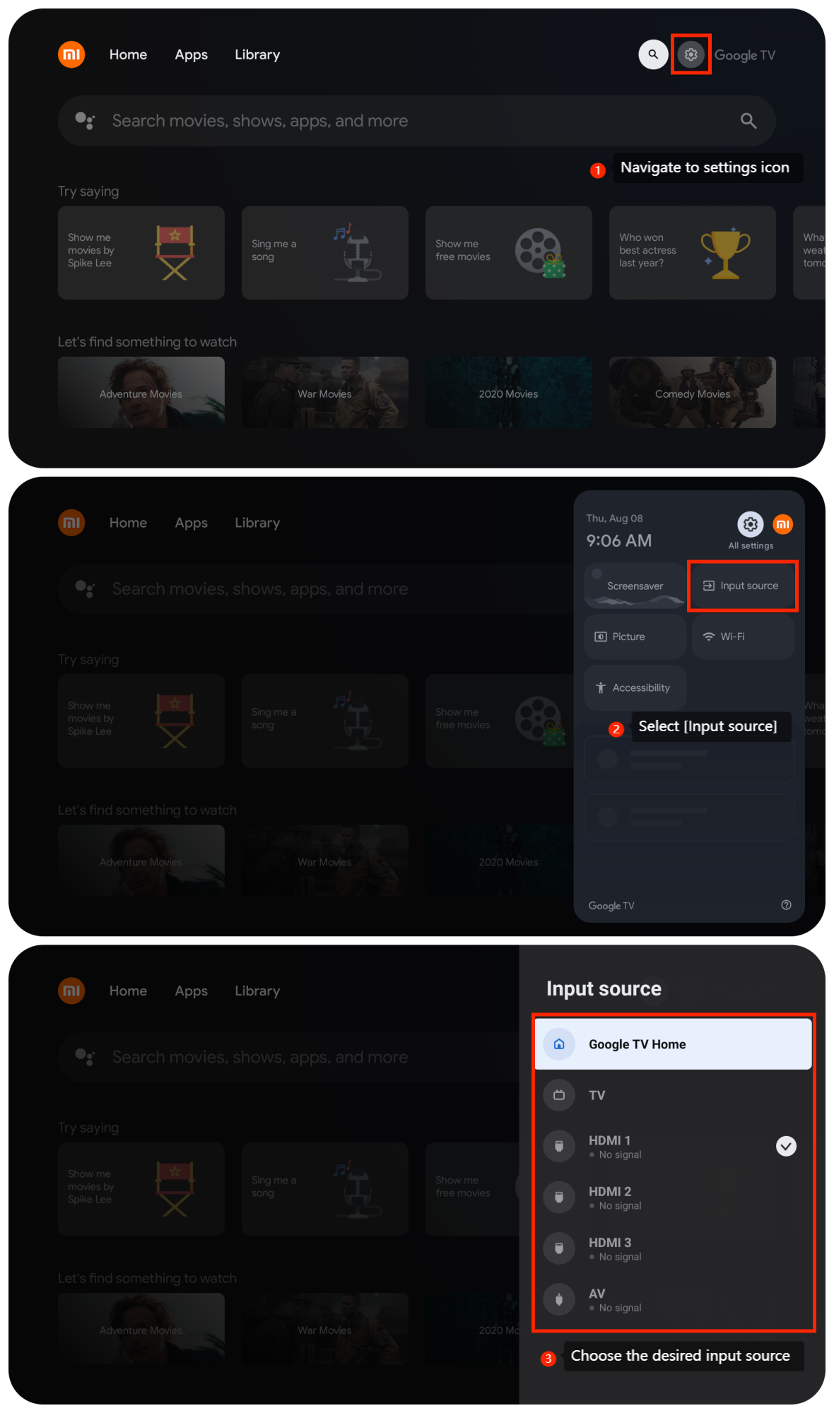 Xiaomi TV A 55 2025 mendukung beberapa perangkat eksternal, seperti konsol game, pemutar Blu-ray atau DVD. Saat Anda mengganti sumber input, Anda menginstruksikan TV Anda untuk menerima sinyal dari perangkat lain yang terhubung.