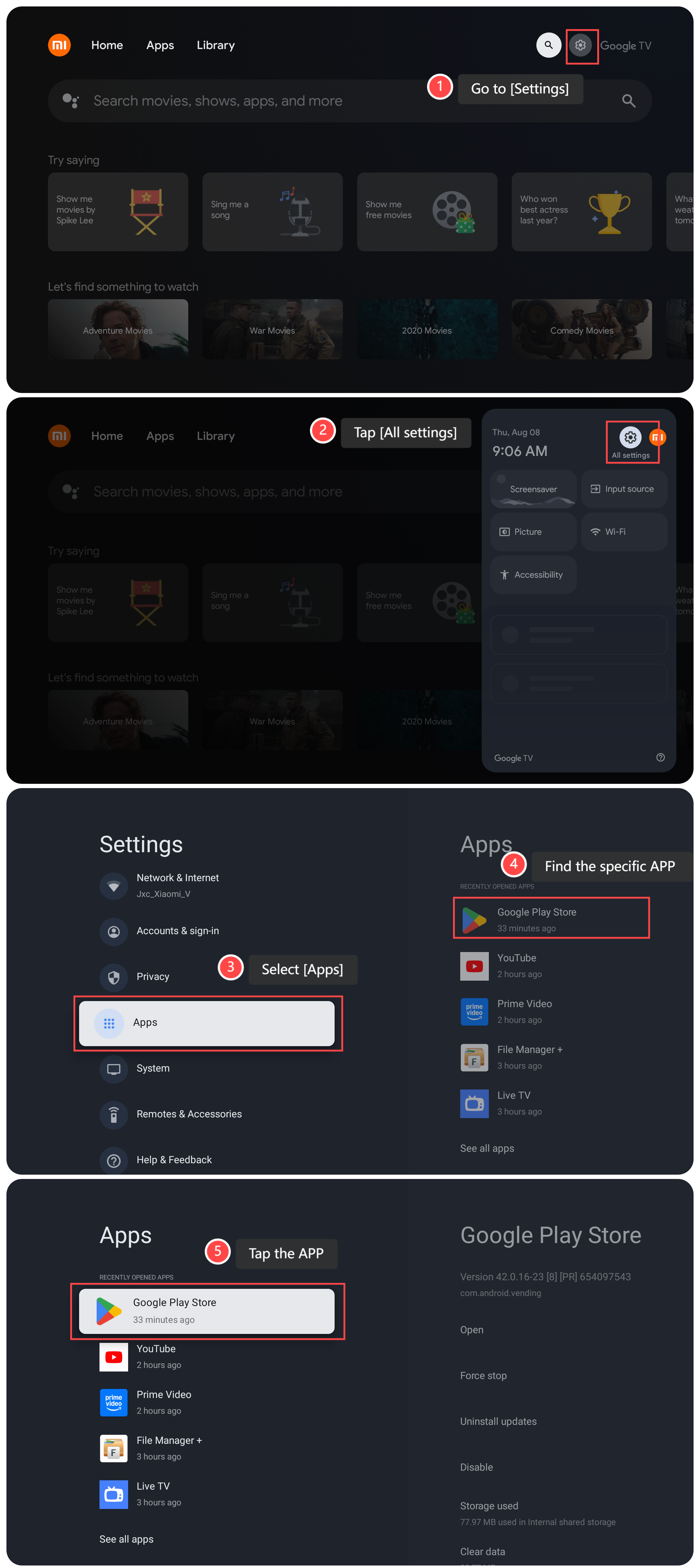 Untuk menghapus cache dan data APP di TV Anda , silakan lihat langkah-langkah berikut:
