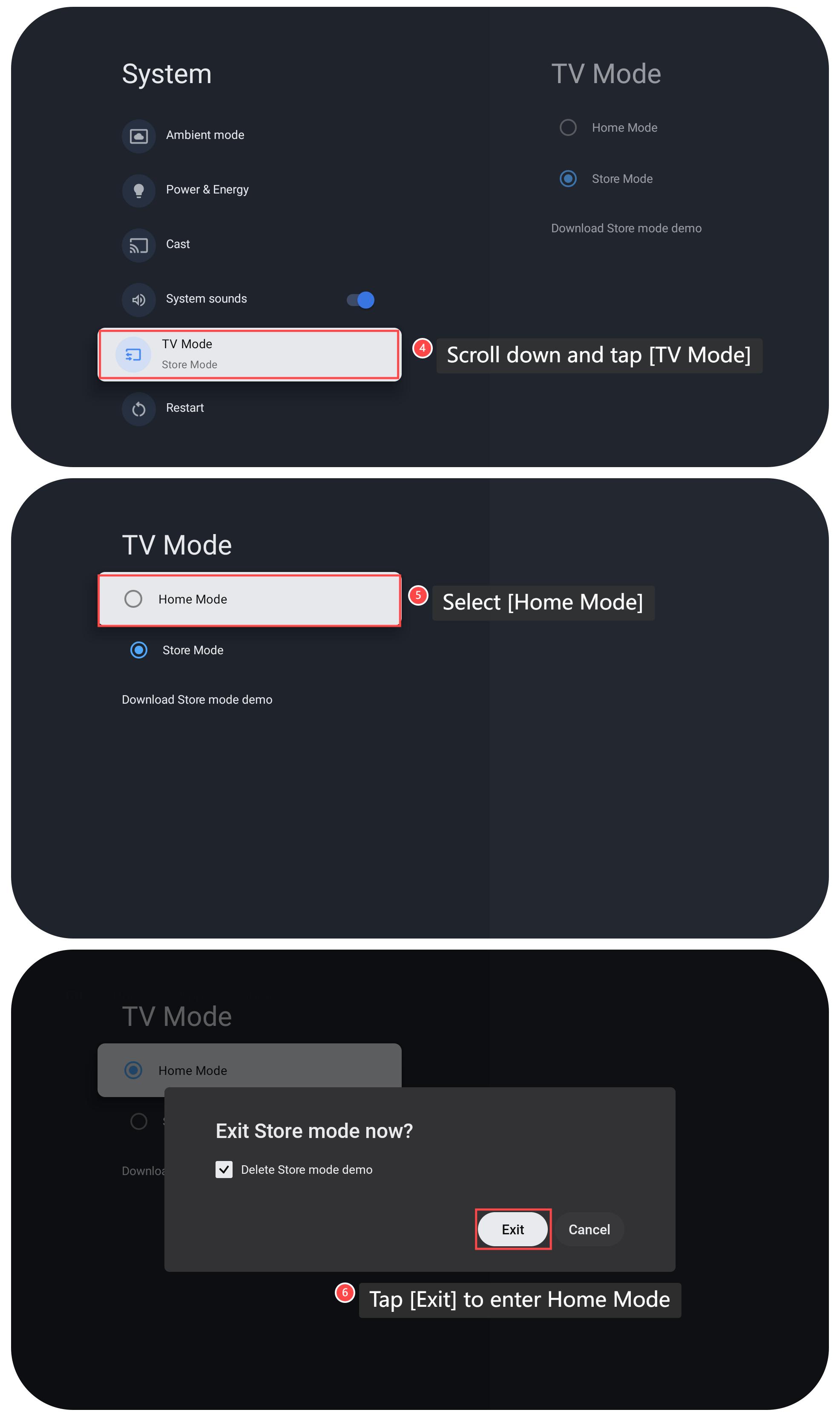 4. Gulir ke bawah dan ketuk [Mode TV];