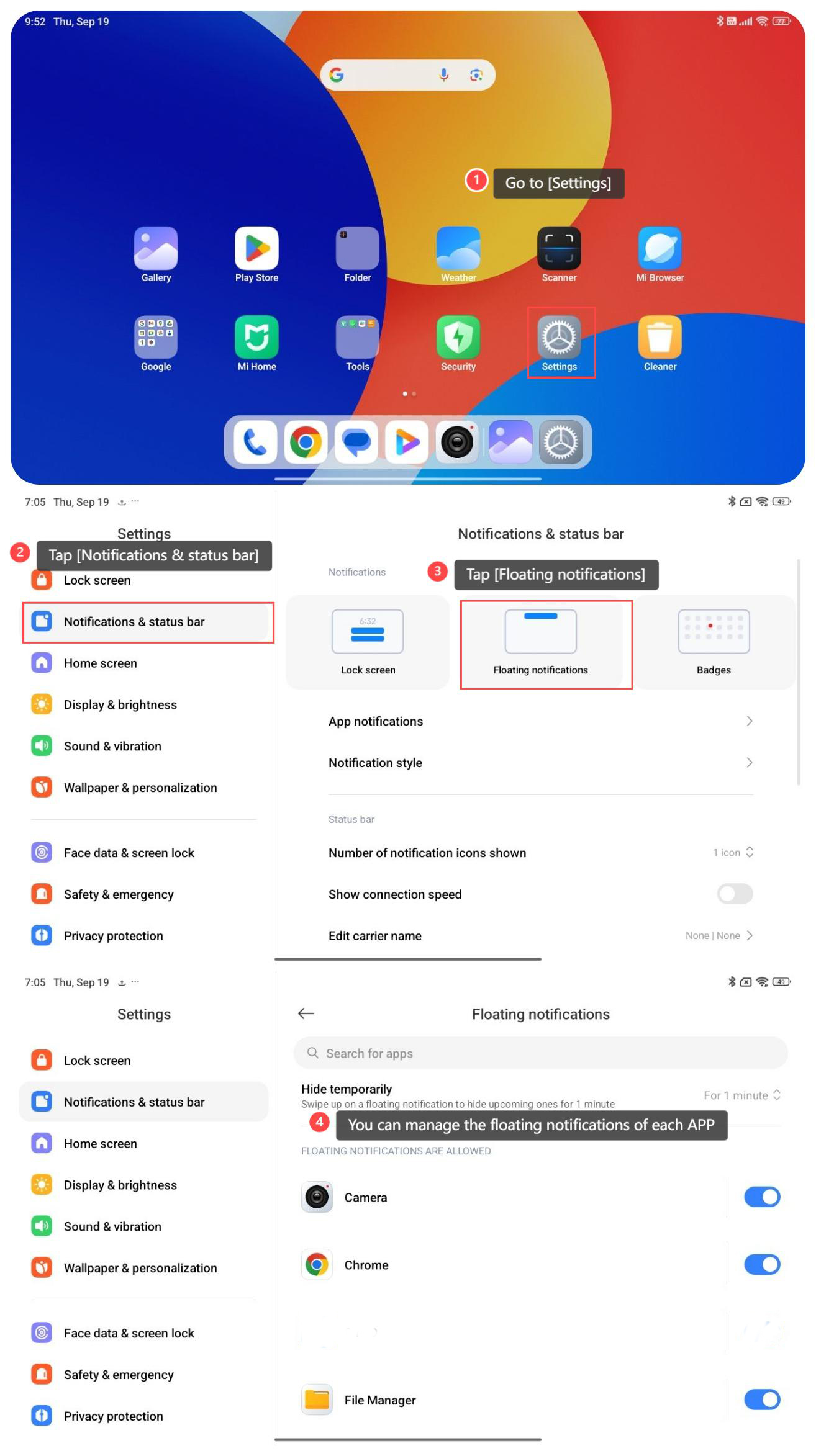 4. Anda dapat mengelola pemberitahuan mengambang dari setiap APP.