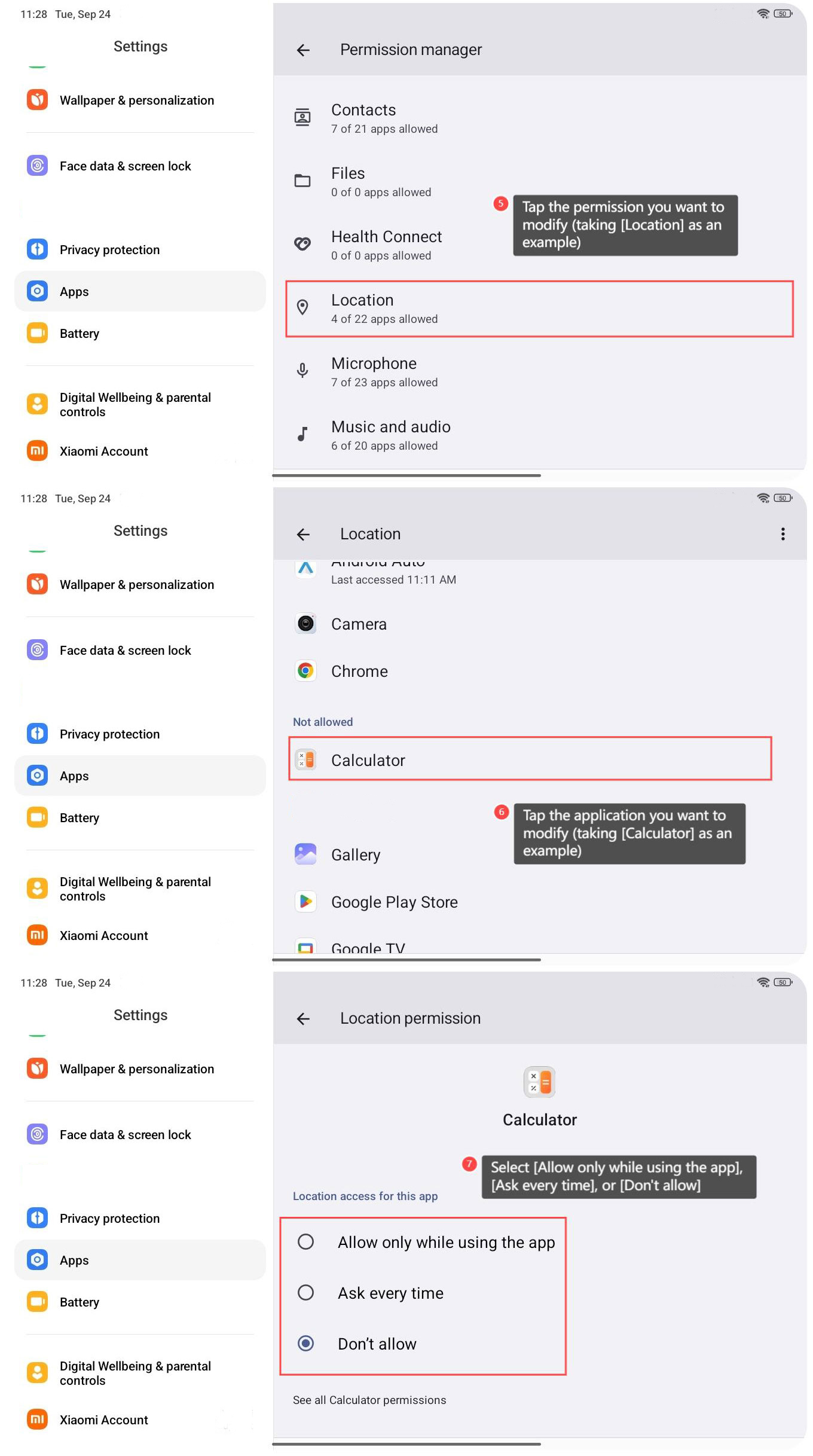 Mengelola izin aplikasi di REDMI Pad SE 8.7 memungkinkan Anda mengontrol data dan fitur apa yang dapat diakses setiap aplikasi. Ini termasuk izin untuk kamera, mikrofon, lokasi, penyimpanan, dan kontak, antara lain. Dengan meninjau dan menyesuaikan izin ini di pengaturan, Anda dapat meningkatkan privasi dan keamanan Anda dengan memastikan bahwa aplikasi hanya mengakses informasi yang diperlukan untuk fungsinya.