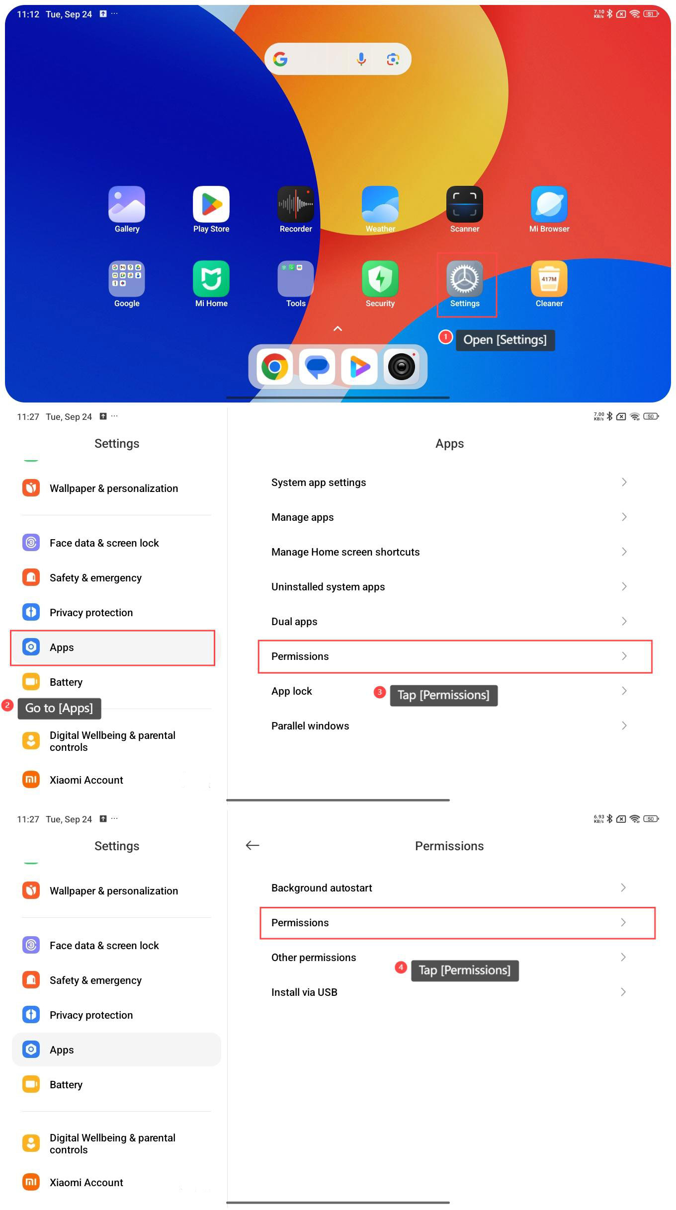 Untuk mengelola izin aplikasi di Redmi Pad SE 8.7 4G, silakan lihat metode berikut: