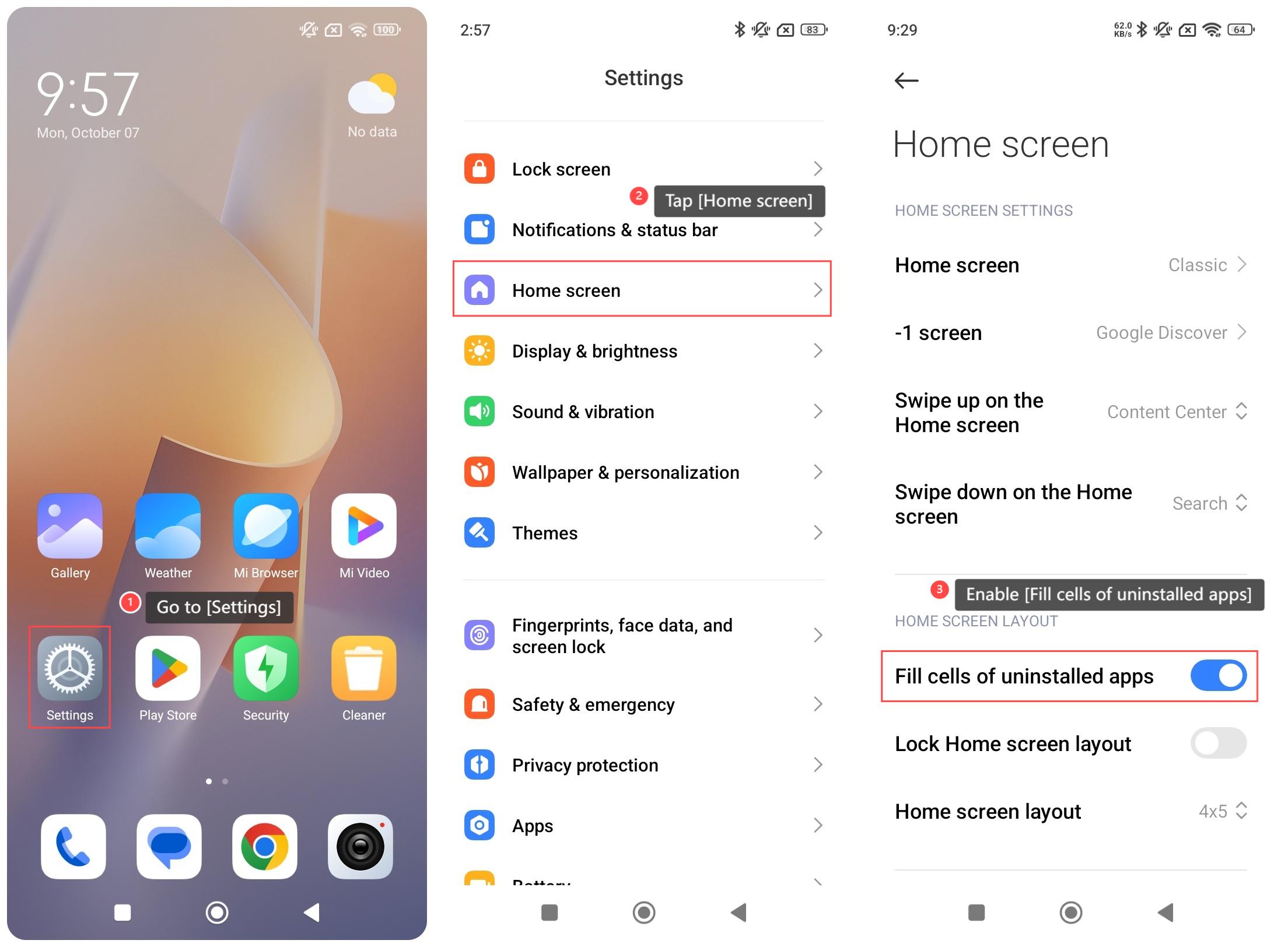Pada REDMI 13C, ikon APP akan dihapus seluruhnya setelah dihapus. Anda juga dapat mengaktifkan opsi di pengaturan untuk mengisi tata letak secara otomatis. Mengisi ruang kosong dapat mempertahankan tampilan yang rapi dan konsisten di layar beranda, mencegah celah yang dapat membuat antarmuka terlihat berantakan. Konsistensi visual ini memungkinkan Anda mengidentifikasi aplikasi yang tersedia dengan cepat tanpa perlu mengatur ulang ikon secara manual.