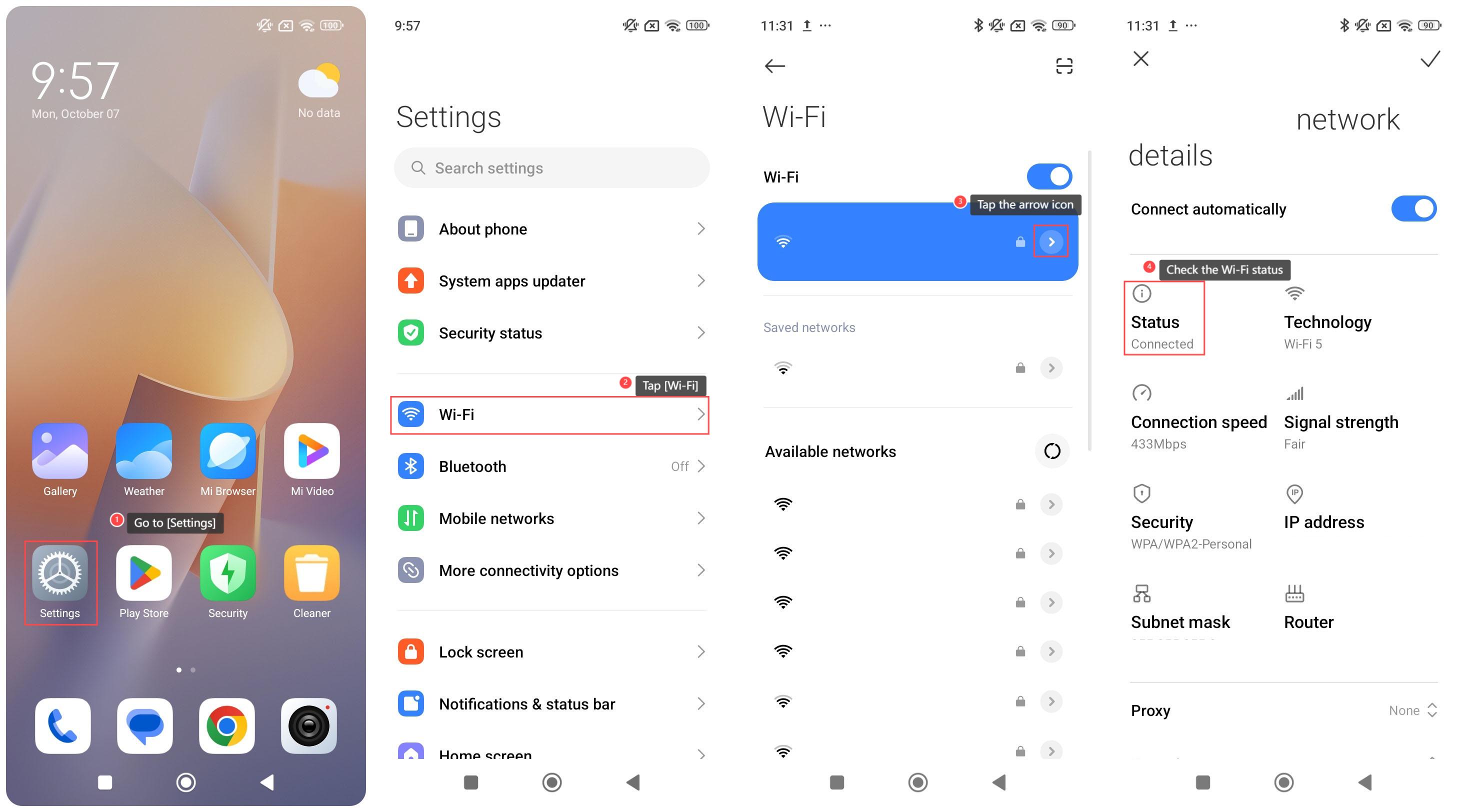 Status Wi-Fi pada Redmi 13C mengacu pada status koneksi Wi-Fi Anda saat ini. Ini dapat menunjukkan apakah perangkat Anda terhubung ke jaringan Wi-Fi. Jika ada masalah koneksi, memeriksa status Wi-Fi dapat membantu mendiagnosis masalah, seperti apakah jaringan sedang down atau apakah perangkat perlu dihidupkan ulang.