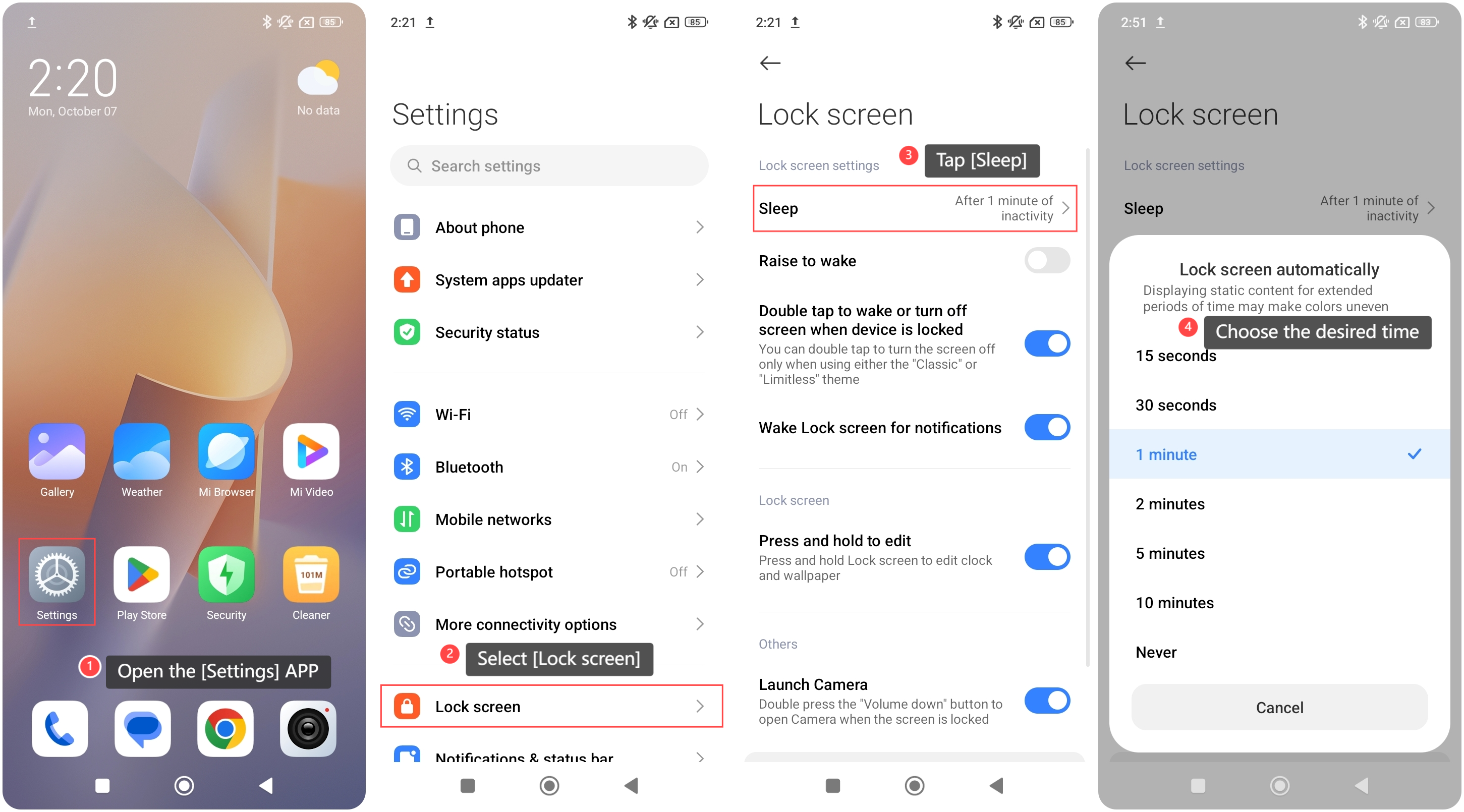 4. Pilih waktu yang diinginkan ponsel Anda untuk masuk ke mode tidur saat tidak aktif.