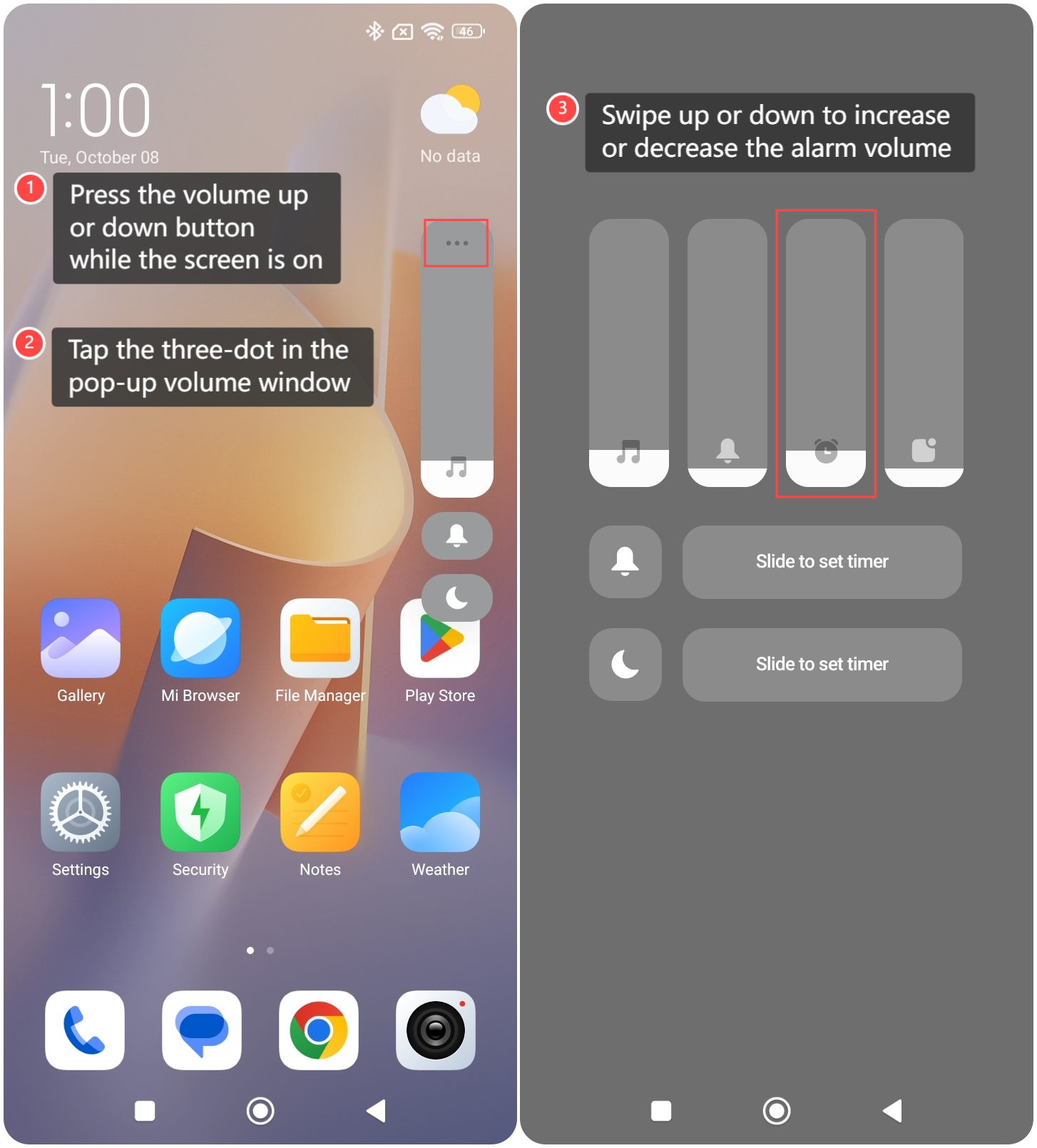 3. Geser ke kiri atau kanan untuk menambah atau mengurangi volume alarm.