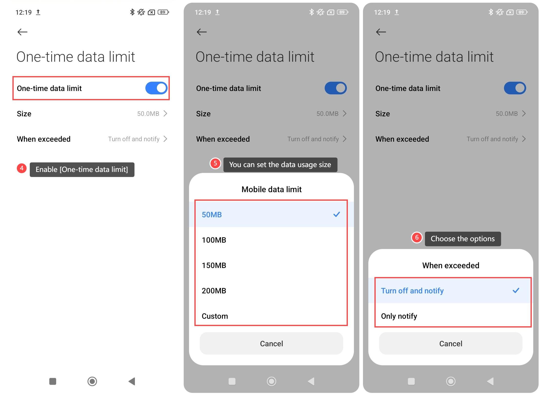 6. Pilih opsi sesuai dengan kebutuhan Anda, dan kemudian Anda dapat menerima pemberitahuan ketika batas terlampaui.