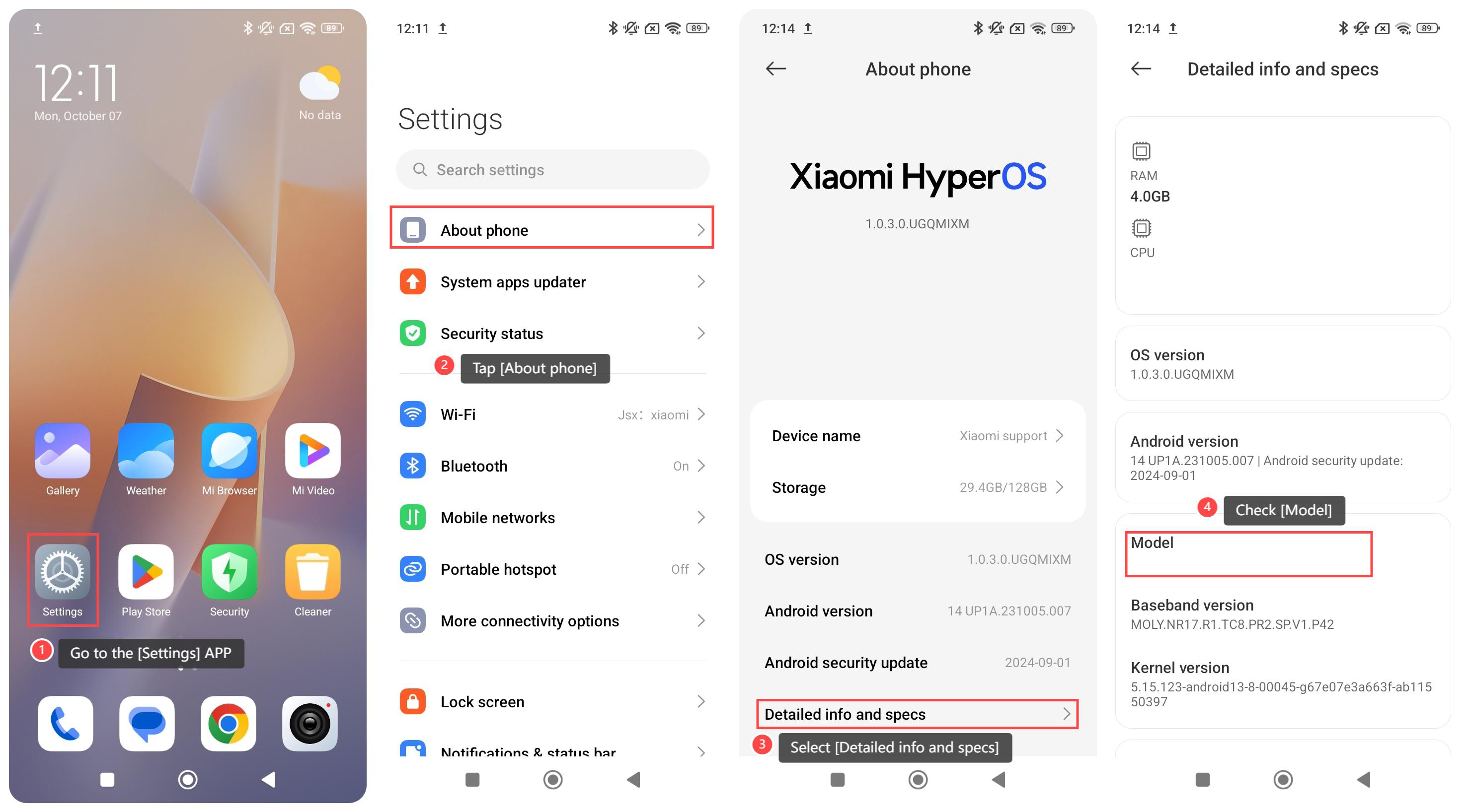 4. Gulir ke bawah dan Andadapat memeriksa [Model] perangkat Anda.