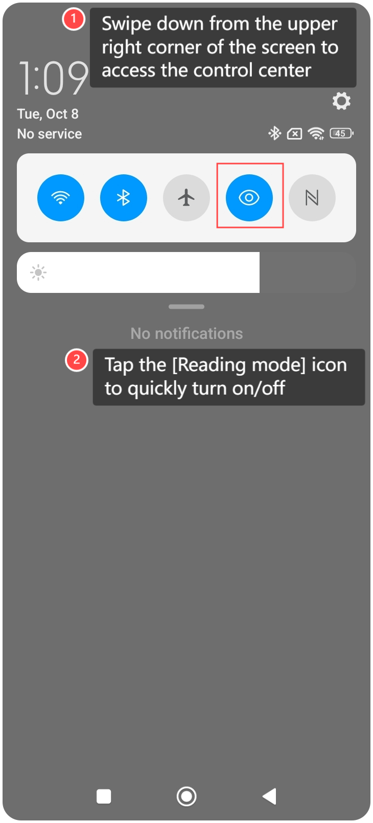 2. Ketuk ikon [Mode membaca] untuk menghidupkan/mematikan dengan cepat.