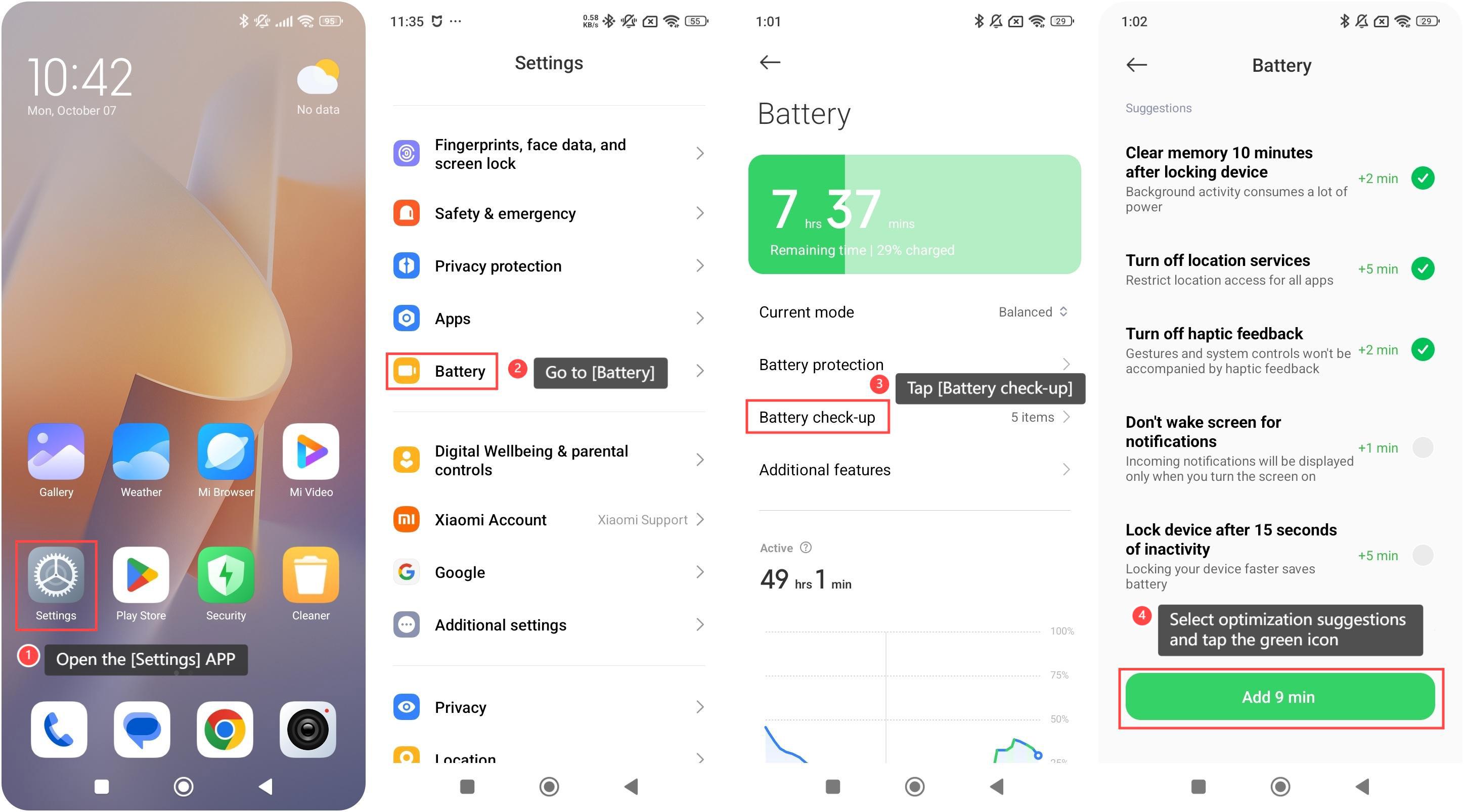 Untuk mengoptimalkan penggunaan baterai secara manual di ponsel Anda, silakan lihat metode berikut :