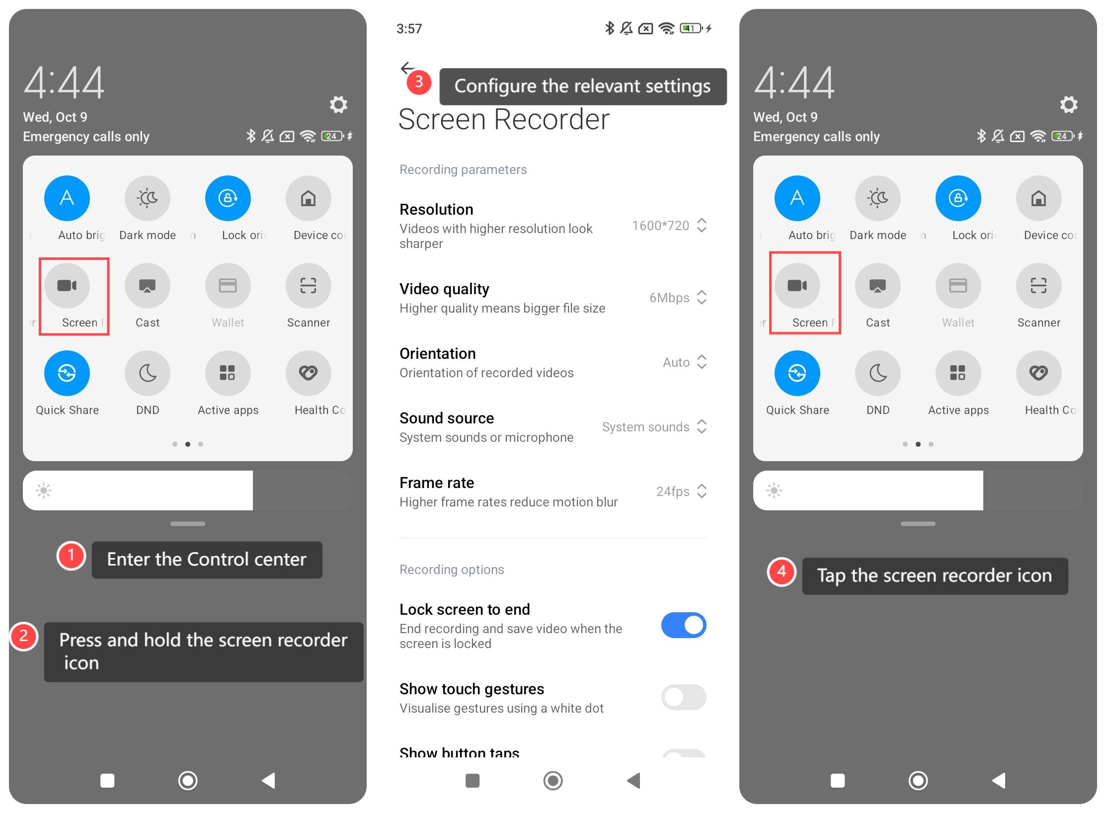 2. Tekan dan tahan ikon perekam layar;
