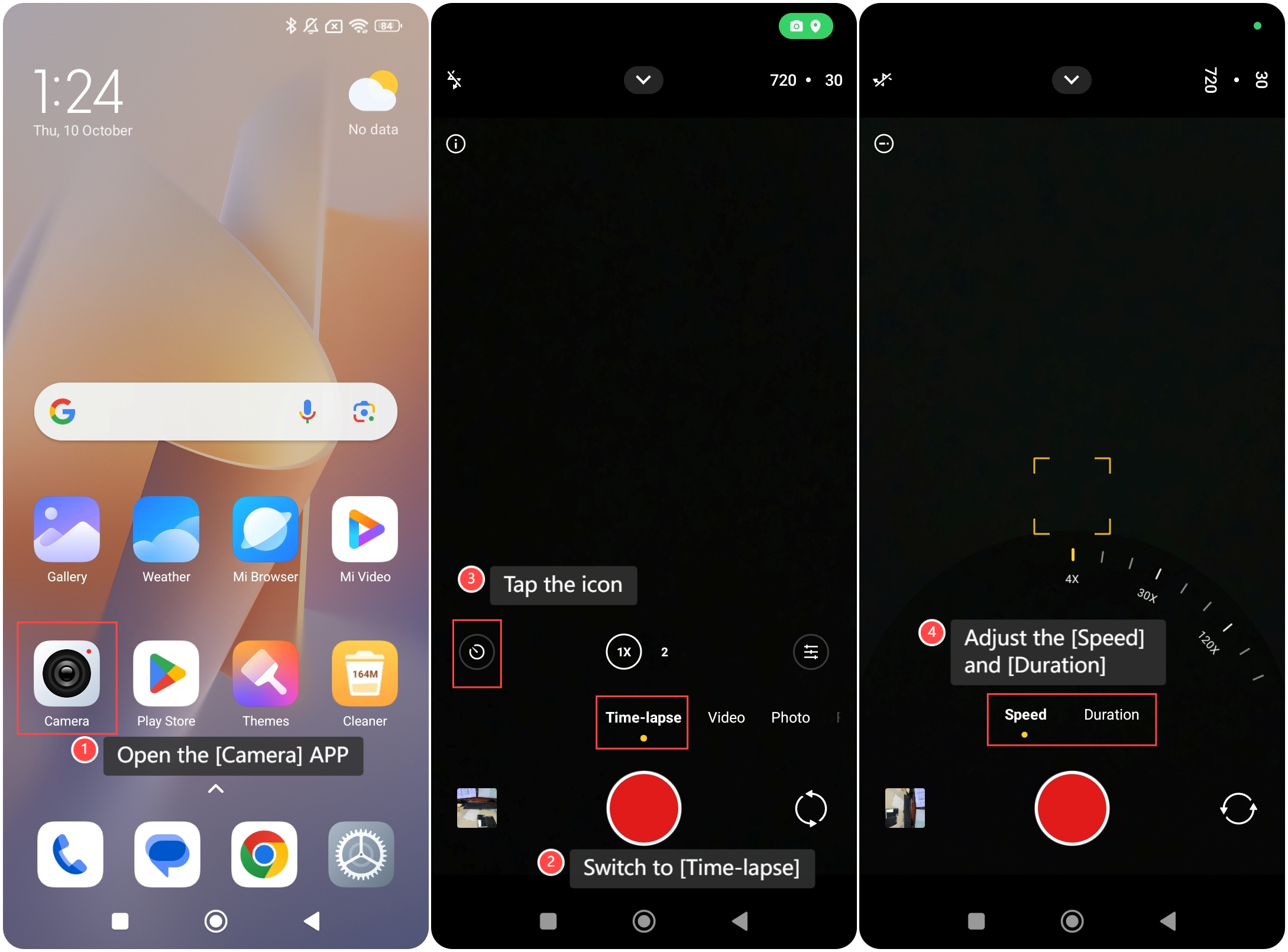 Untuk menggunakan Time-lapse di telepon, silakan lihat langkah-langkah berikut: