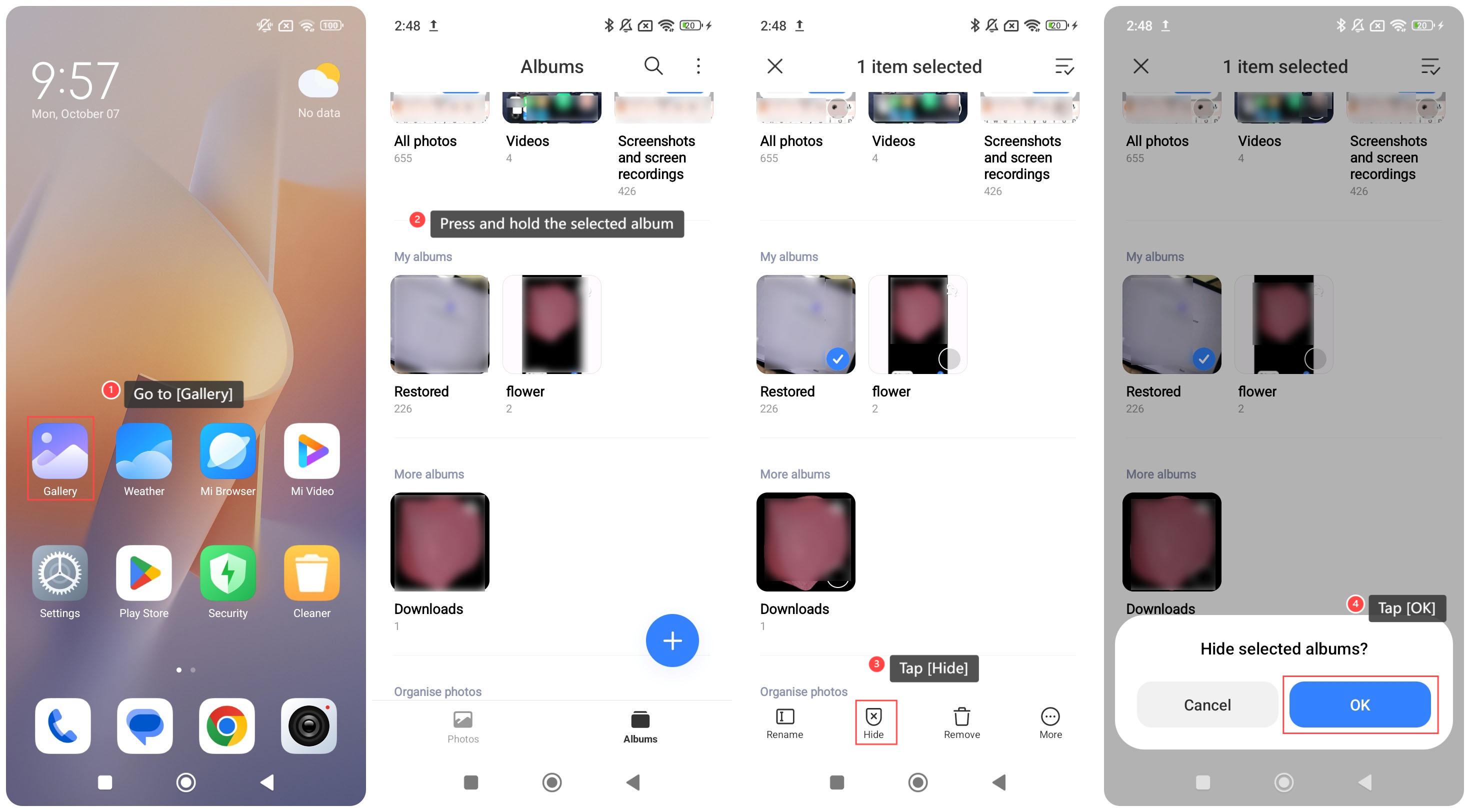 Untuk menghapus menyembunyikanalbum di Galeri di ponsel Anda, silakan lihat langkah-langkah berikut: