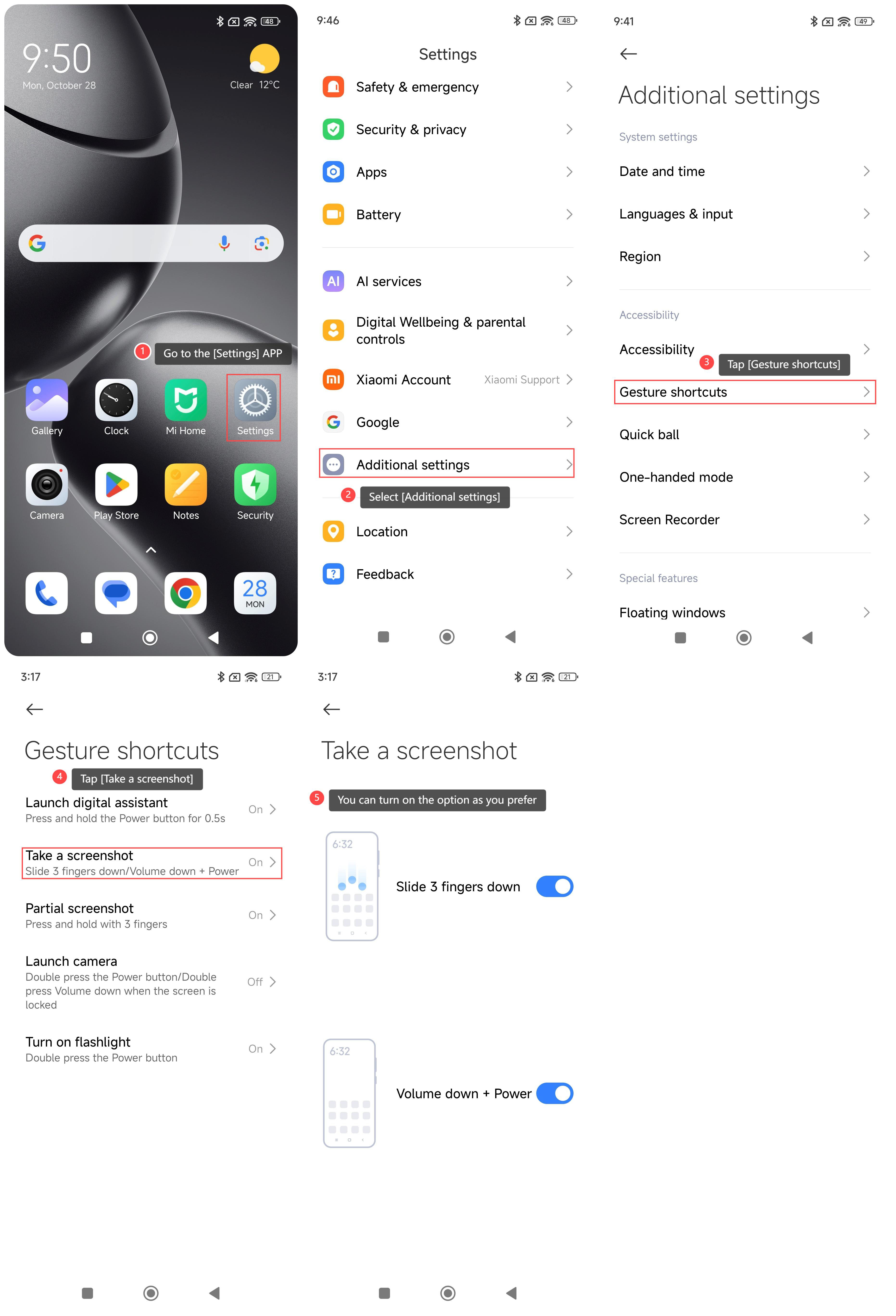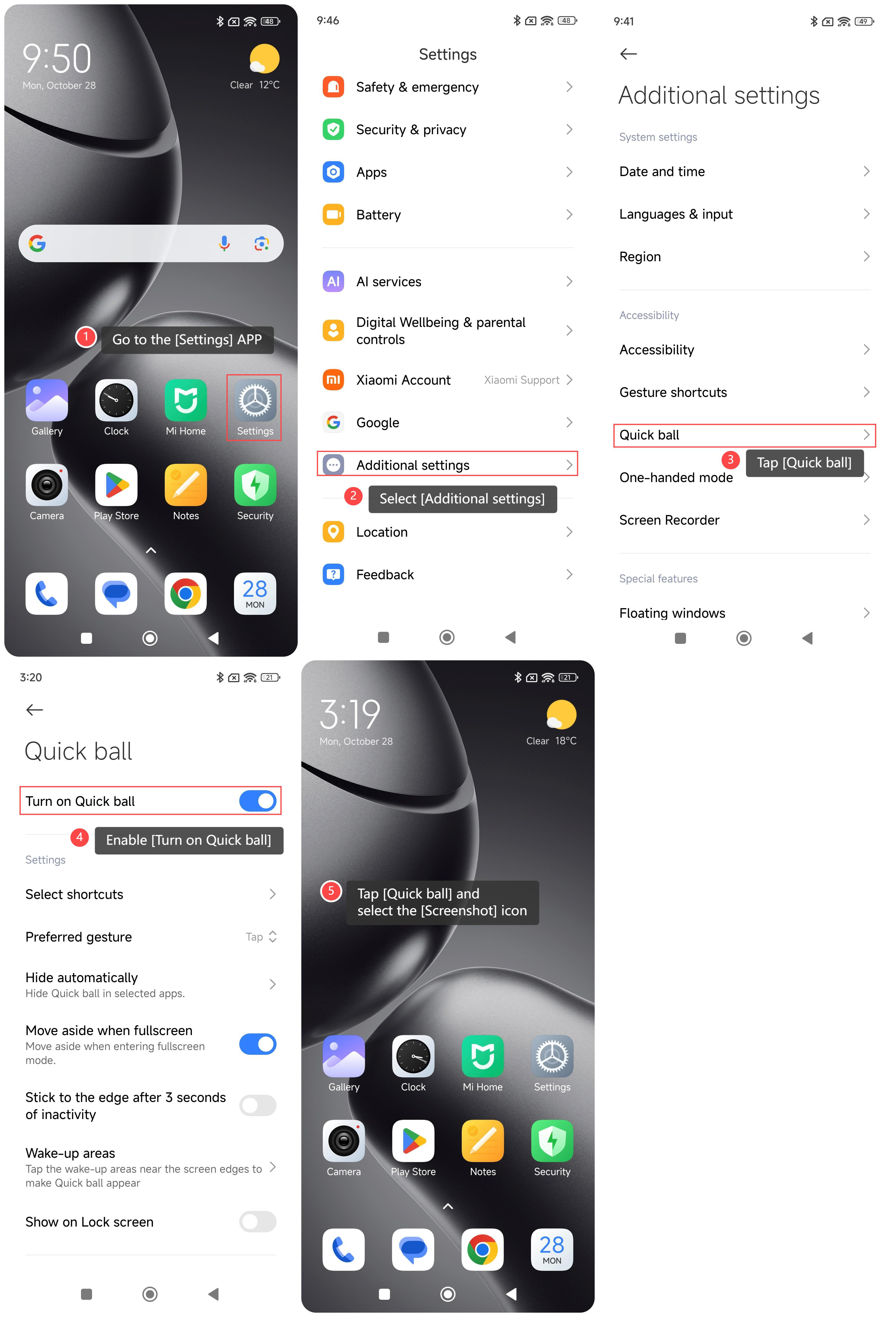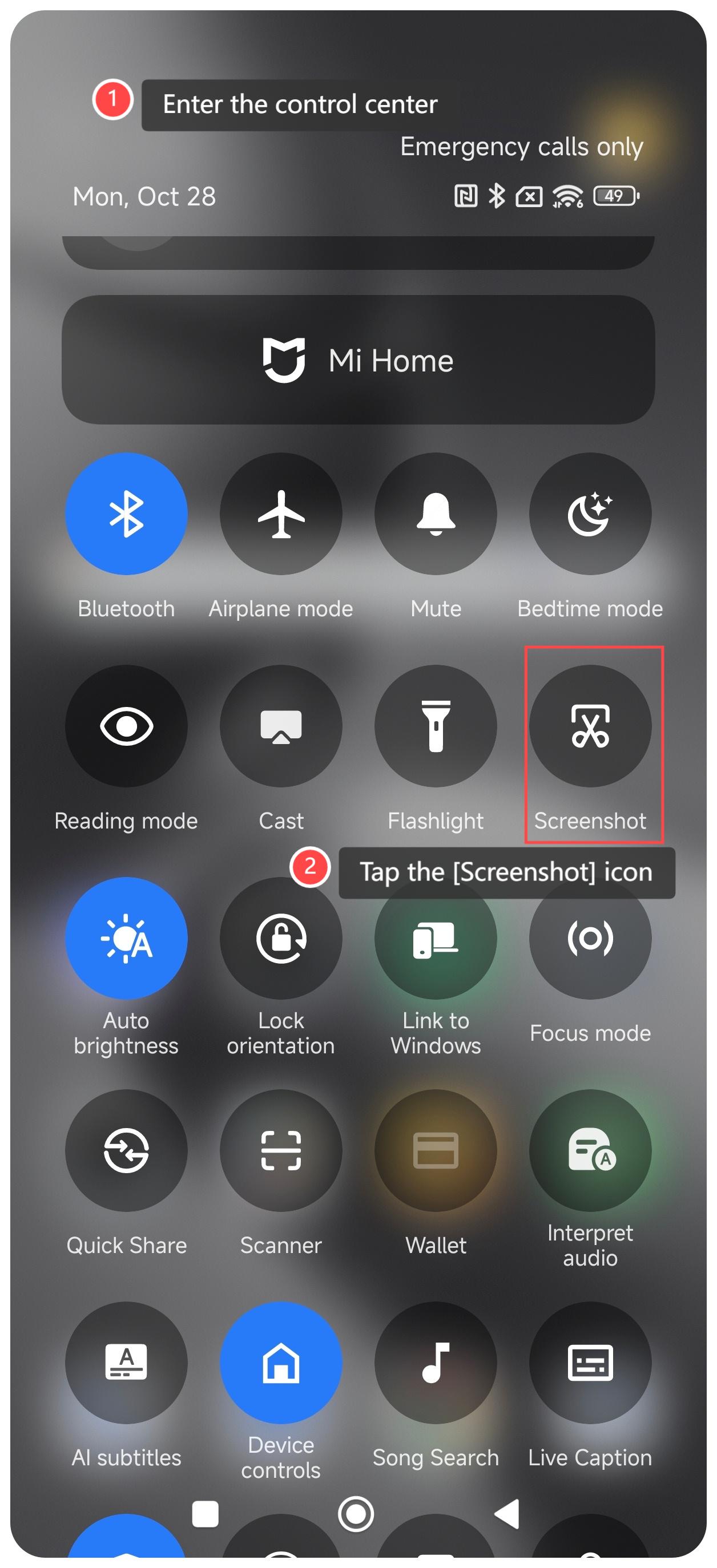 Fungsi tangkapan layar pada Xiaomi 14T Pro menyediakan cara yang nyaman dan cepat untuk menangkap layar di ponsel, memungkinkan Anda merekam dan berbagi informasi penting dengan mudah. Ini mendukung pengeditan dan anotasi untuk memenuhi beragam kebutuhan, dan tidak perlu mengunduh aplikasi tambahan, sehingga menghemat ruang penyimpanan. Selain itu, Anda dapat dengan mudah mengelola tangkapan layar agar mudah diambil dan digunakan di masa mendatang. Ini membuat tangkapan layar menjadi alat praktis yang meningkatkan pengalaman penggunaan secara keseluruhan. Untuk mengambil tangkapan layar di ponsel Anda,silakan lihat metode berikut: Metode 1: 1. Geser ke bawah dari sudut kanan atas layar untuk masuk ke pusat kendali; 2. Ketuk ikon [Tangkapan layar]. Metode 2: 1. Buka APLIKASI [Pengaturan] di ponsel Anda; 2. Pilih [Pengaturan tambahan]; 3. Ketuk [Pintasan gerakan]; 4. Ketuk [Ambil tangkapan layar]; 5. Ada dua opsi untuk Anda, termasuk [Geser 3 jari ke bawah] dan [Volume turun + Daya]. Anda dapat mengaktifkan opsi sesuai keinginan Anda. Metode 3: 1. Buka APLIKASI [Pengaturan] di ponsel Anda; 2. Pilih [Pengaturan tambahan]; 3. Ketuk [Bola cepat]; 4. Aktifkan [Nyalakan Bola Cepat]; 5. Kembali ke layar beranda. Ketuk [Bola cepat]dan pilih ikon [Tangkapan layar].