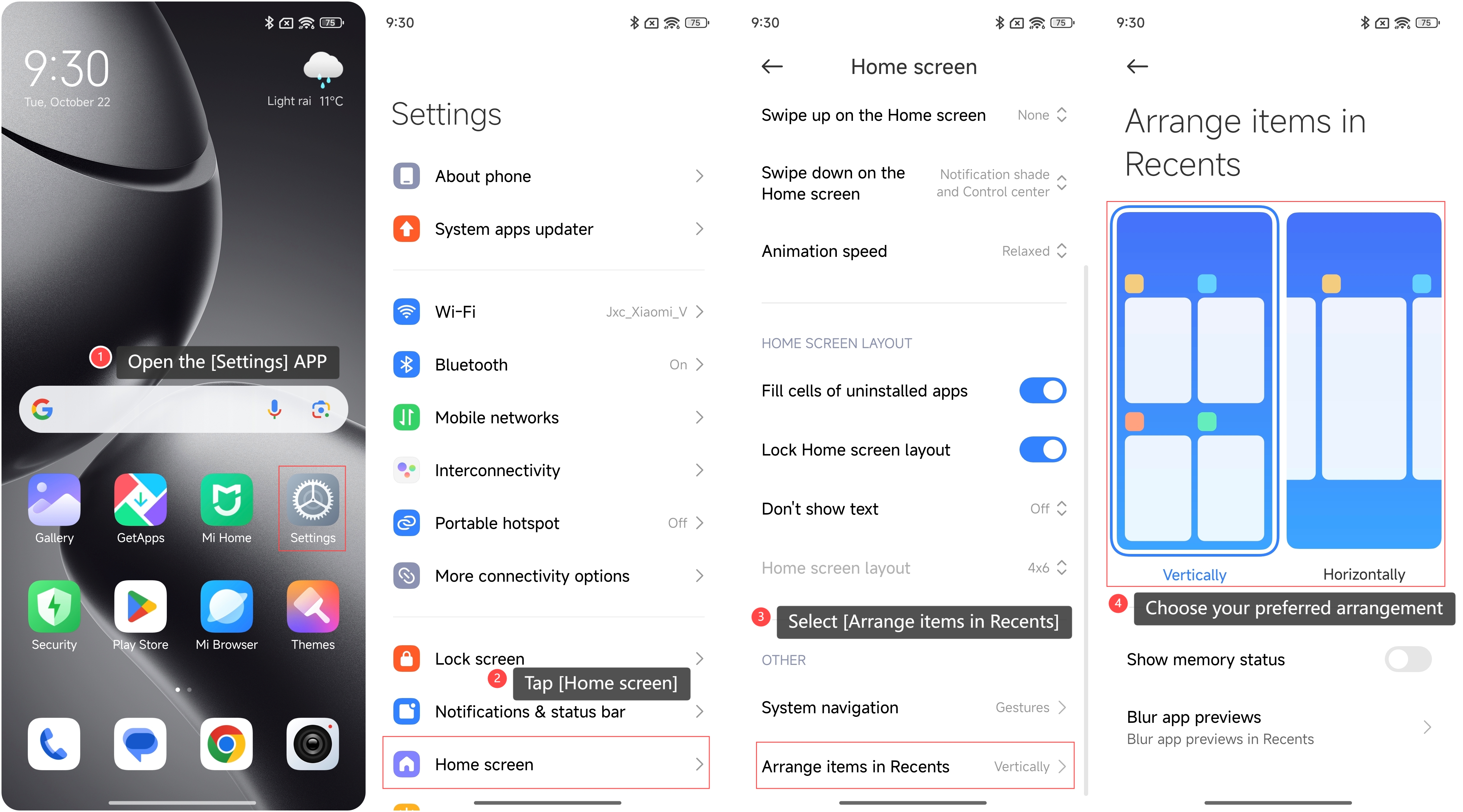 Xiaomi 14T Pro mendukung penyesuaian gaya Terbaru, yang meningkatkan pengalaman Anda dengan memungkinkan Anda menyesuaikan tata letak layar Terbaru sesuai dengan preferensi Anda. Fitur ini tidak hanya meningkatkan aksesibilitas tetapi juga memberikan tampilan yang lebih terorganisir dari APP yang baru saja Anda gunakan.