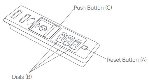 1. Atur tombol (B) ke 0-0-0 untuk membuka kunci kunci;