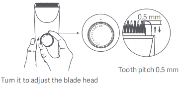 Fungsi dial kepala yang dapat disesuaikan adalah untuk mengatur jarak pitch gigi dalam kisaran dari 0.5mm hingga 7.7mm. Kisaran 0,5mm hingga 0,8mm cocok untuk memangkas cambang dan kontur leher, sedangkan 1,1mm hingga 1,7mm ideal untuk memadukan rambut di sekitar leher dan cambang.