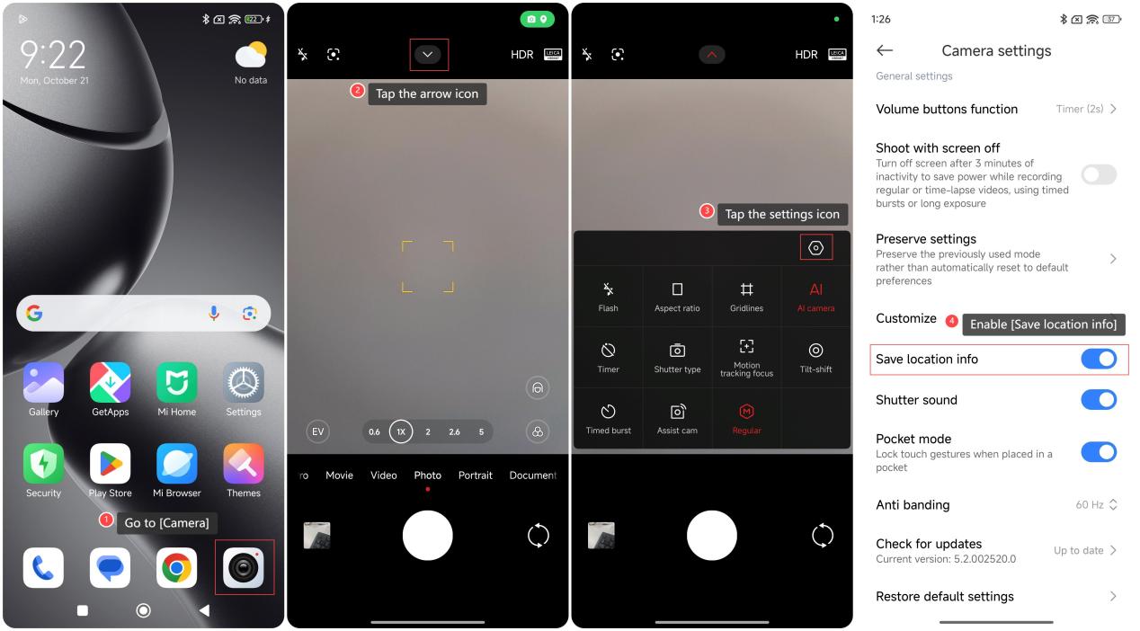 Untuk menyimpan lokasi pada foto yang diambil oleh ponsel Anda, silakan lihat langkah-langkah berikut:
