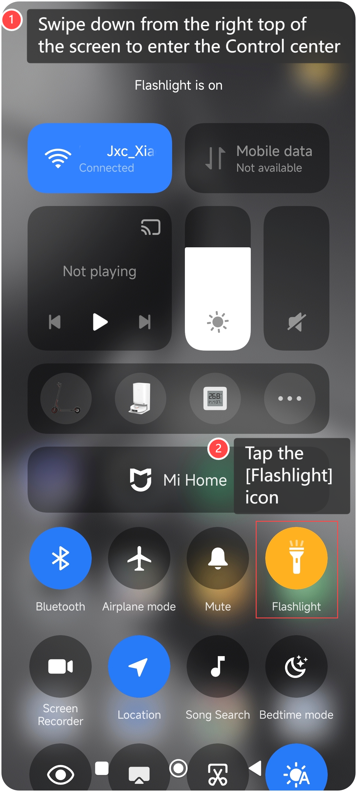 1. Geser ke bawah dari kanan atas layar untuk masuk ke Pusat kontrol;