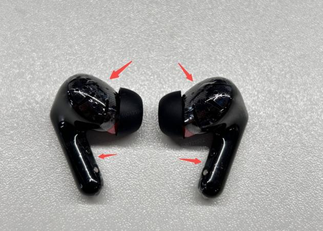 Karena perbedaan batch produksi, earbud hitam dan biru dilengkapi dengan film pelindung yang harus dilepas sebelum digunakan, sedangkan earbud putih tidak memiliki film dan dapat digunakan secara langsung. Gambar earbud hitam atau biru dengan film pelindungs: 1. Batang dengan film; 2. Batang dengan film + cangkang depan dengan film datar; 3. Batang dengan film + cangkang depan dengan film mesh. Gambar earbud putih tanpa film pelindungs: