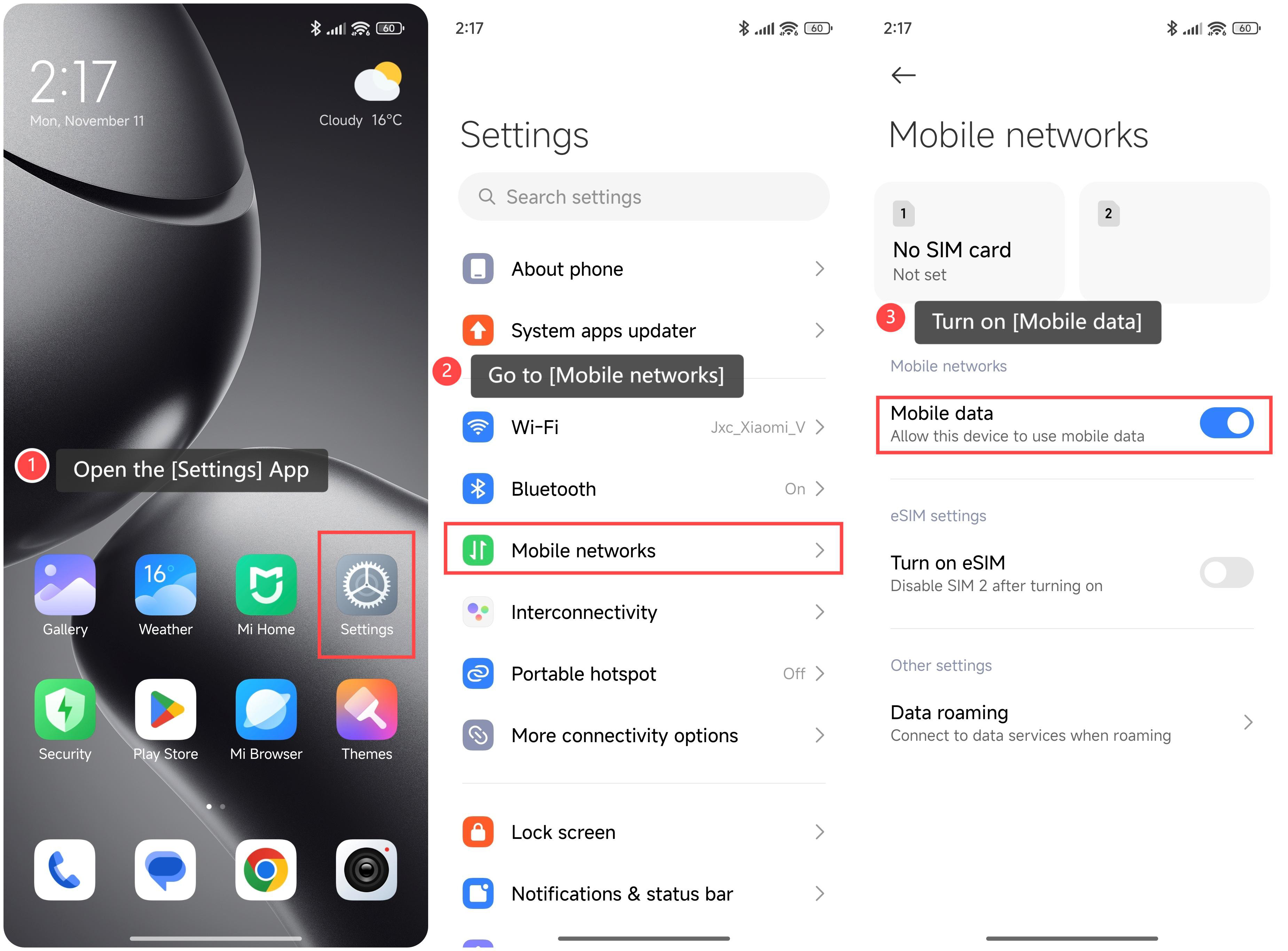 Untuk mengaktifkan data seluler, silakan lihat metode berikut: