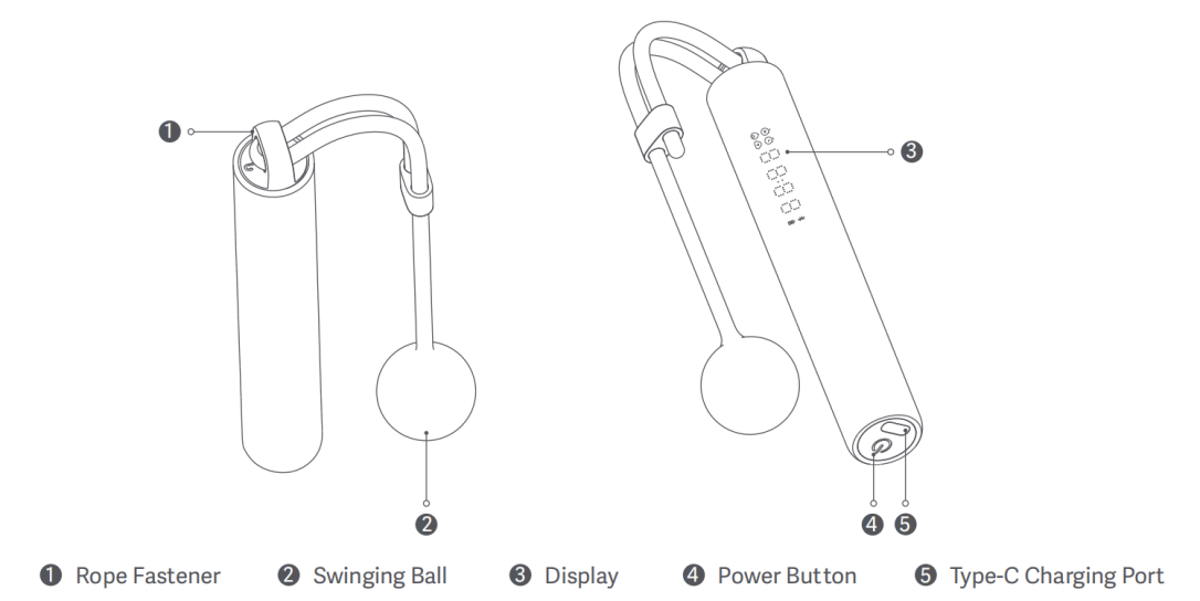 Tampilan dan aksesori Xiaomi Smart Jump Rope ditunjukkan pada gambar di bawah ini: