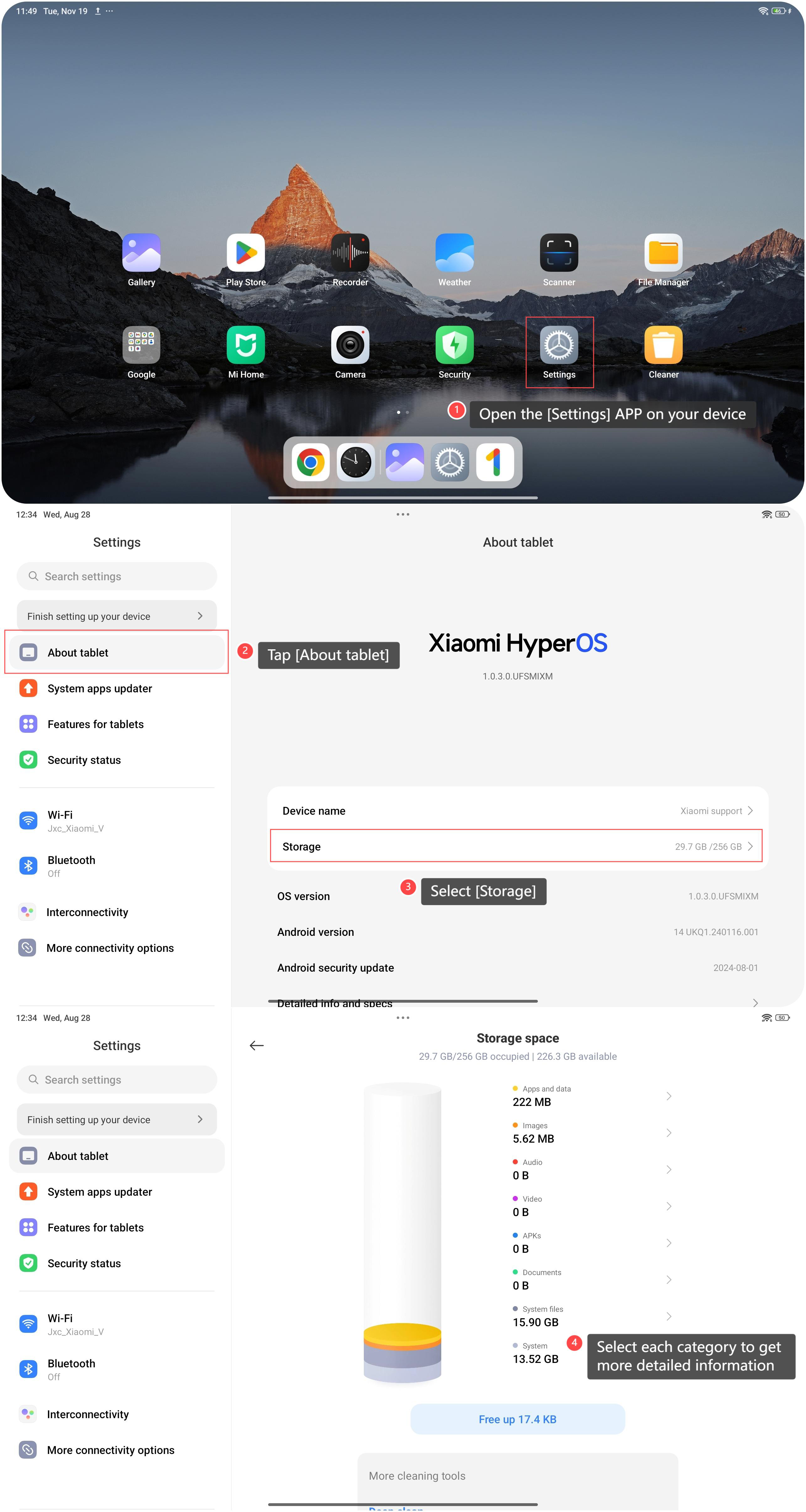 3. Pilih [Penyimpanan] untuk mengakses informasi terperinci tentang penggunaan penyimpanan perangkat Anda;