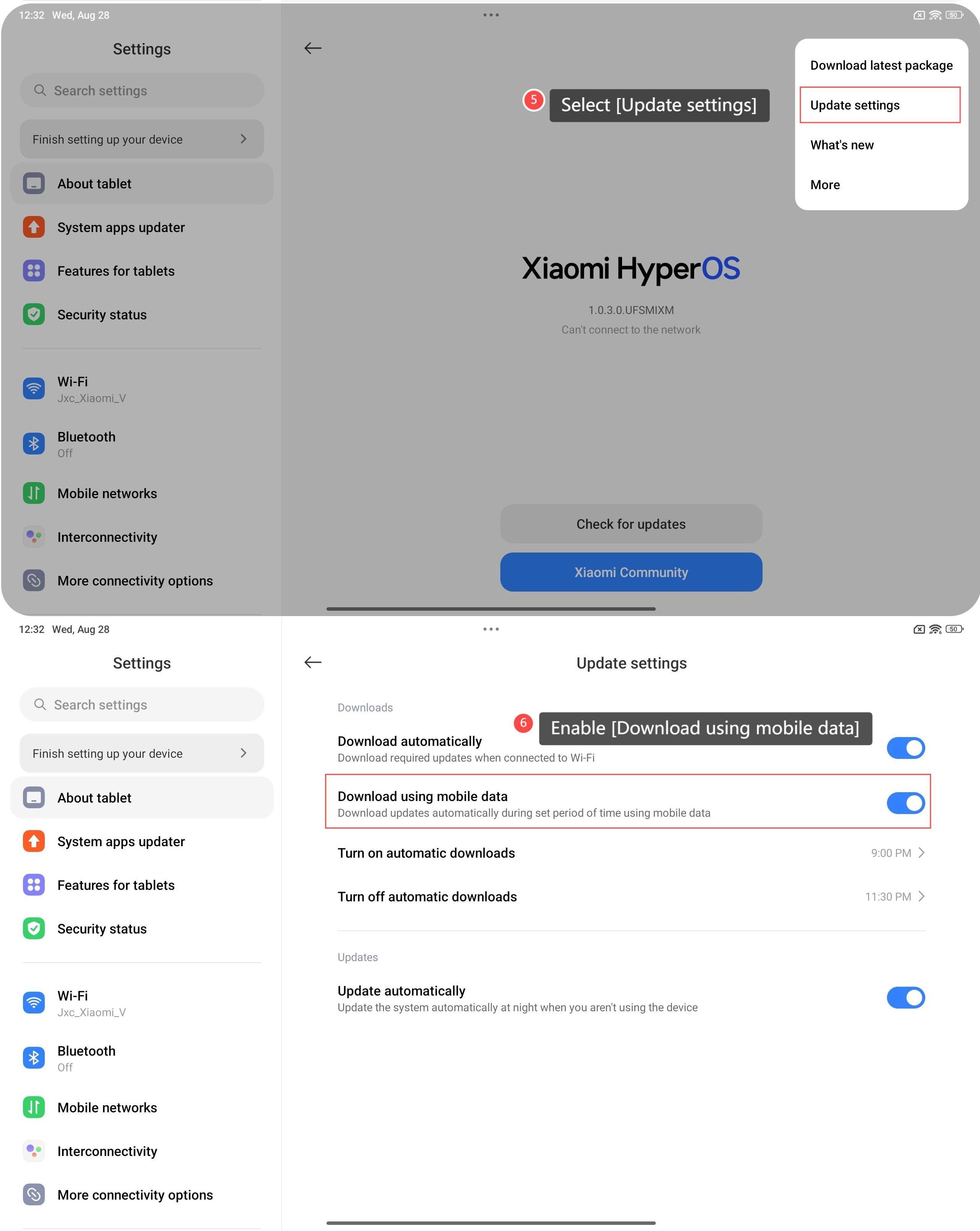 Untuk mengunduh pembaruan sistem di tablet Anda menggunakan data seluler, silakan lihat langkah-langkah berikut: