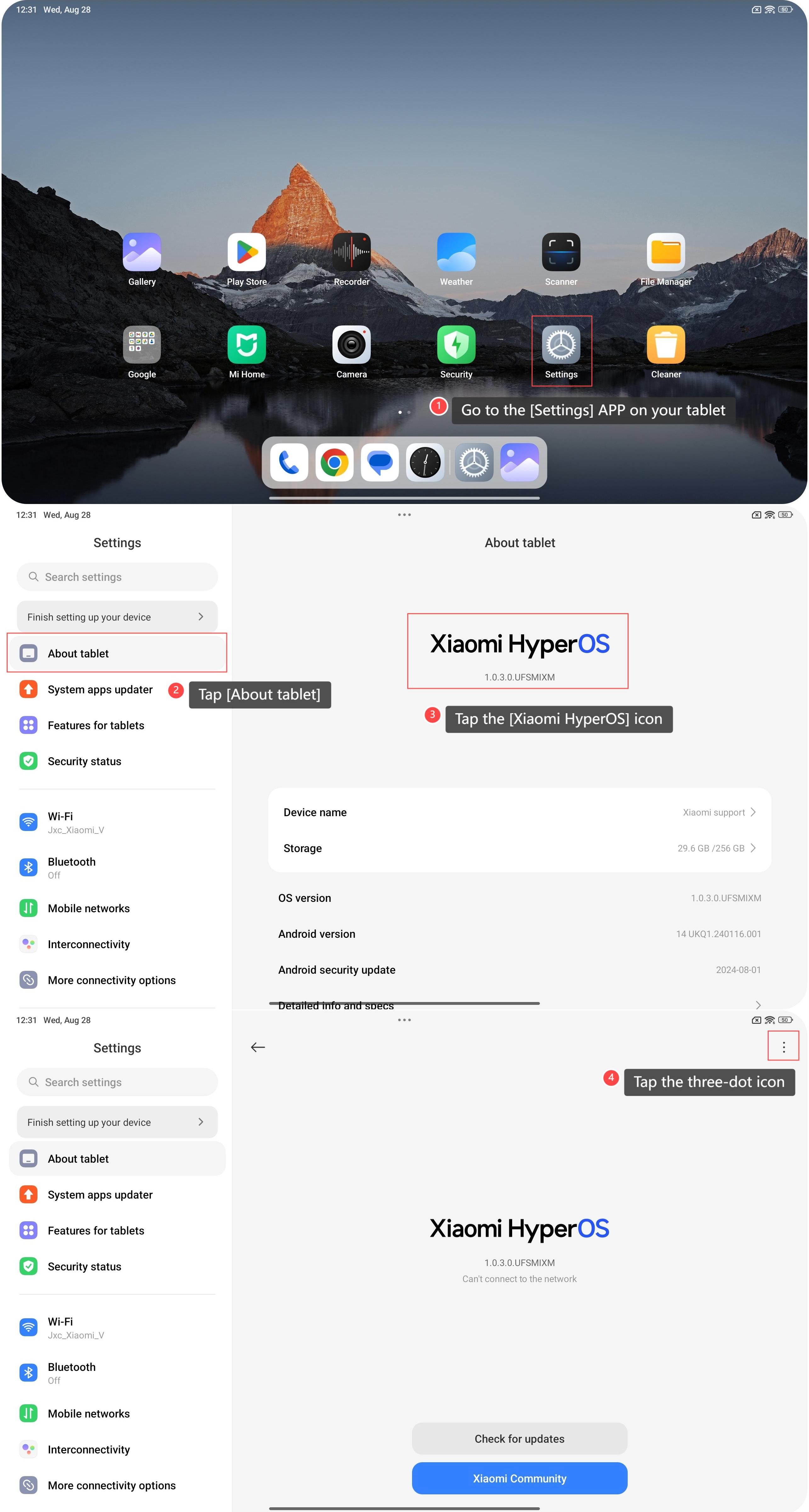 1. Buka APLIKASI [Pengaturan] di tablet Anda;