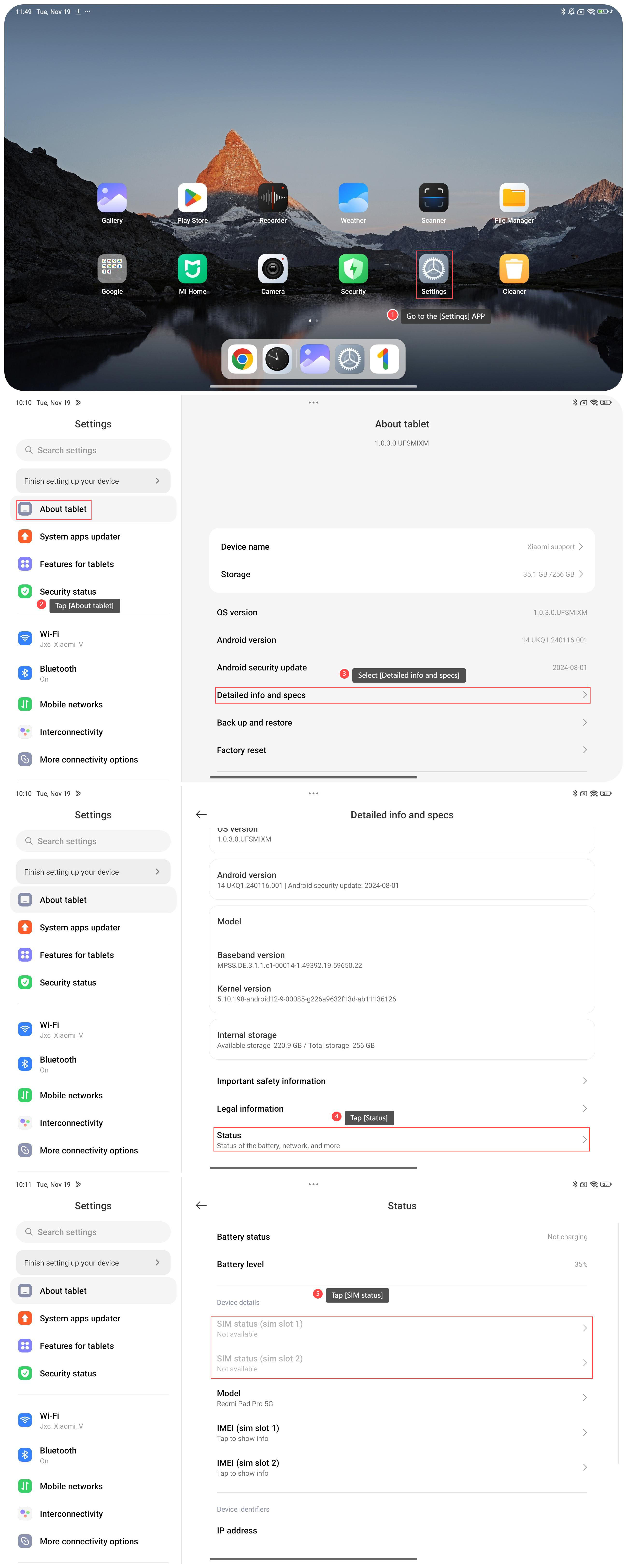 Untuk memeriksa status SIM tablet Anda, silakan lihat langkah-langkah berikut: