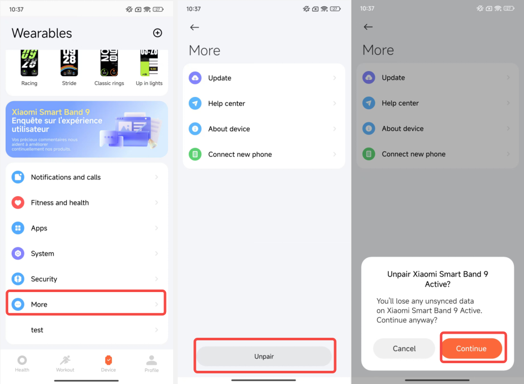 Anda dapat melepas ikatan Xiaomi Smart Band 9 Active dari ponsel saat Anda perlu mengikat dengan perangkat wearable baru. Melepaskan dan mengikat ulang juga dapat membantu menyelesaikan beberapa masalah koneksi ketika band mengalami masalah seperti gagal terhubung dengan benar, sering terputus, atau kegagalan pemasangan.