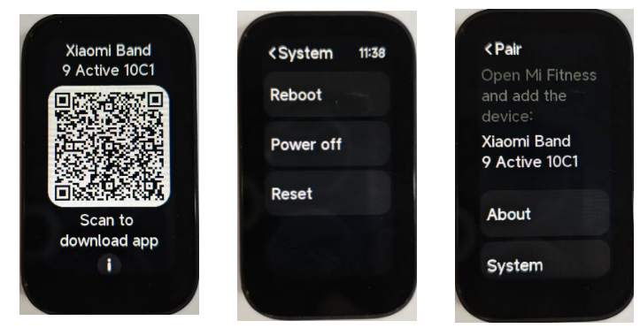2. Saat pita tidak terikat, layar akan menampilkan "Pindai untuk mengunduh aplikasi". Anda perlu menggunakan Aplikasi Mi Fitness untuk mengikat sebelum Anda dapat menggunakan fungsi band.