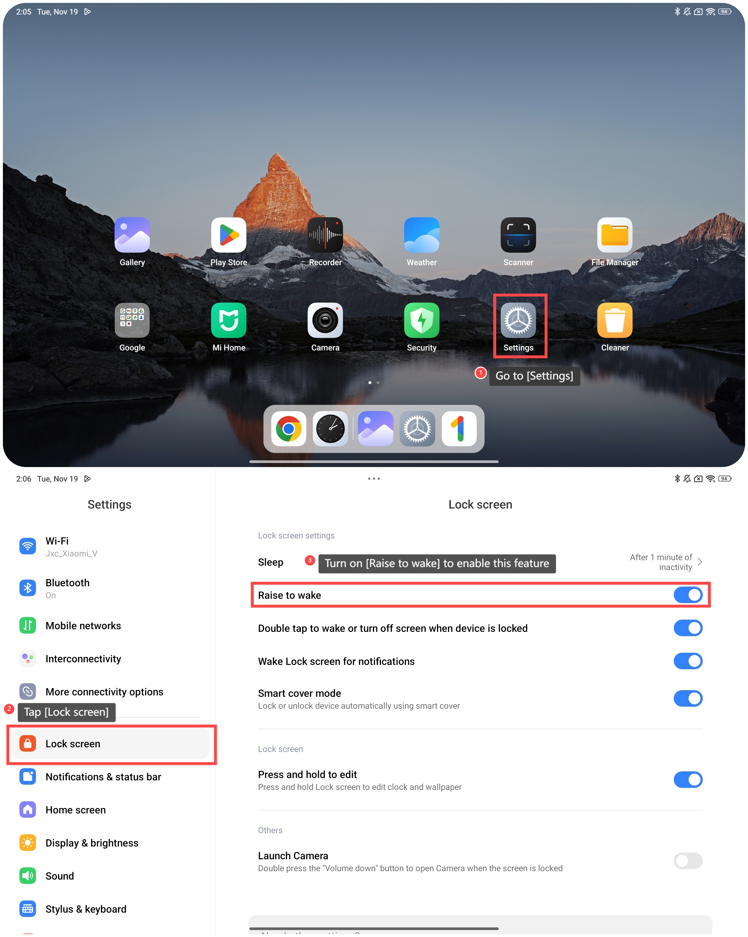 Untuk mengaktifkan Raise untuk bangun di tablet, silakan lihat langkah-langkah berikut: