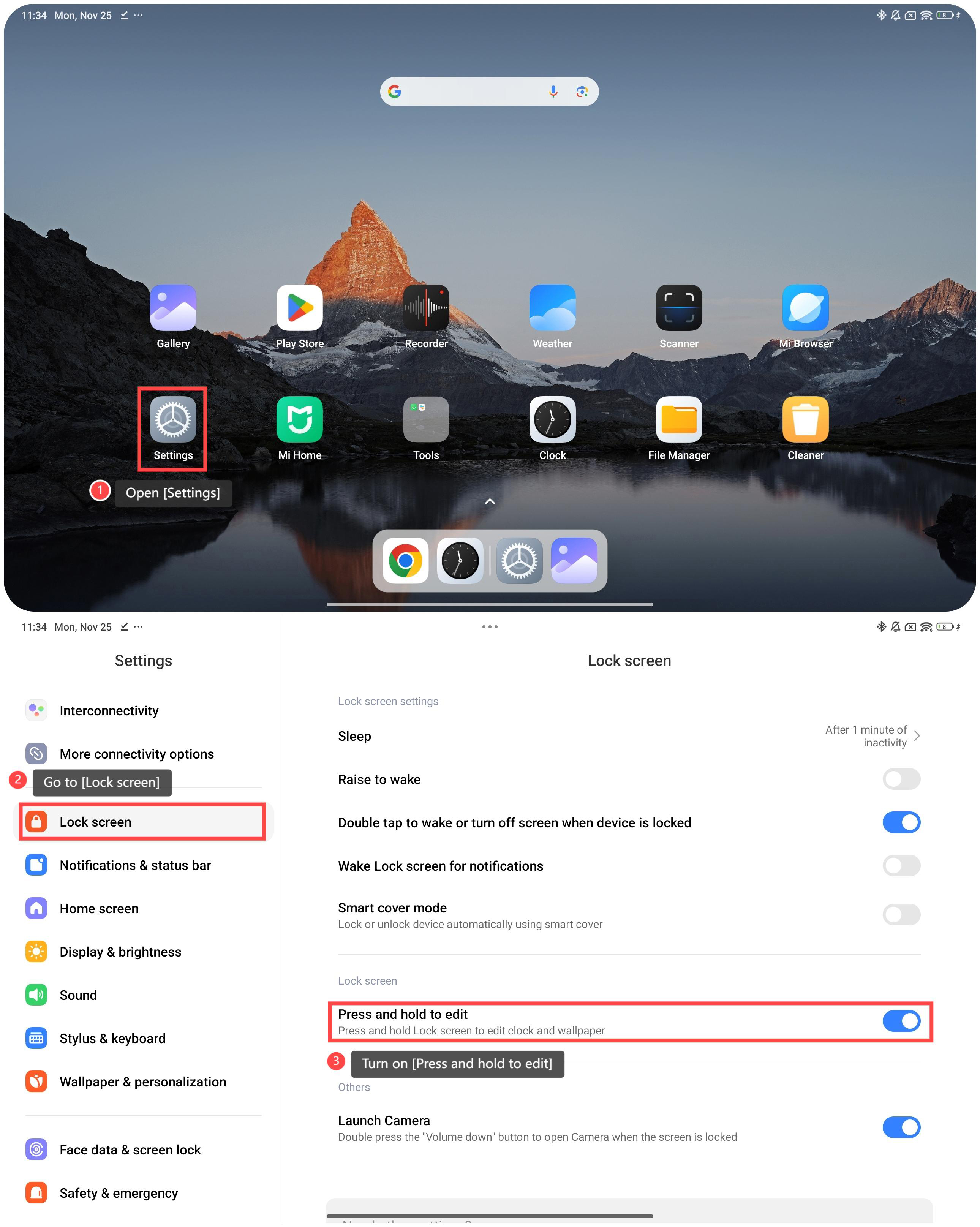 Untuk mengedit wallpaper dengan menekan dan menahan layar kunci, silakan lihat langkah-langkah berikut: