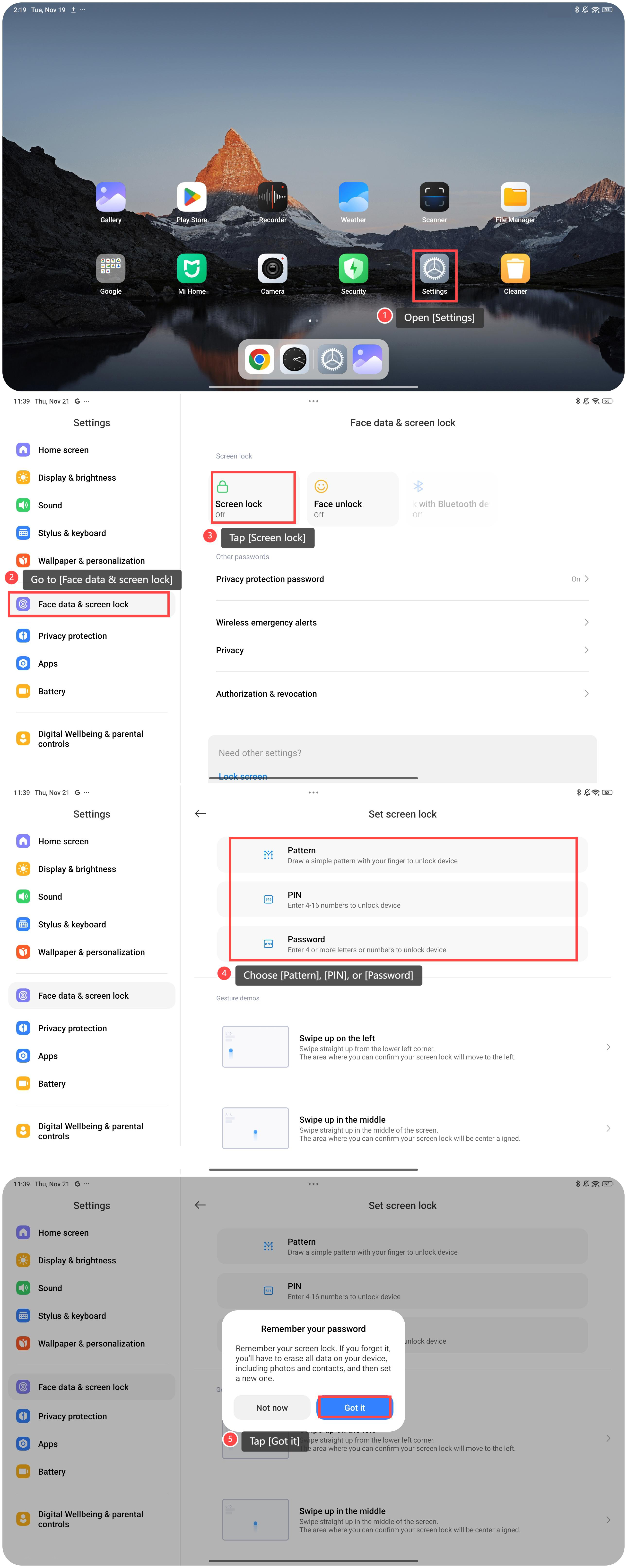 5. Ketuk [Mengerti], lalu Anda dapat mengatur kunci layar Anda.