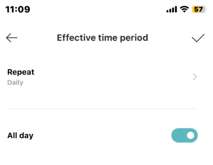 6. Ketuk [Waktu efektif] untuk mengatur periode waktu efektif peringatan suara dan cahaya, yang dapat diatur berdasarkan minggu. Anda dapat mengatur waktu mulai dan berakhir 24 jam per hari. Ini diatur setiap hari dan sepanjang hari (24 jam) secara default;