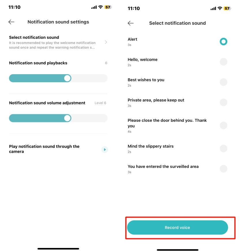 8. Ketuk [Rekam suara] untuk merekam suara khusus, yang mendukung hingga 10 detik untuk setiap suara;