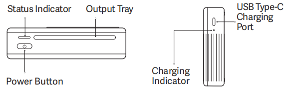 A: Xiaomi Portable Photo Printer 1S memiliki indikator status, baki output, satu tombol daya, port pengisian daya USB Type-C, dan satu indikator pengisian daya. Ilustrasi produk, aksesori, dan antarmuka pengguna hanya untuk tujuan referensi. Produk dan fungsi aktual dapat bervariasi karena peningkatan produk.