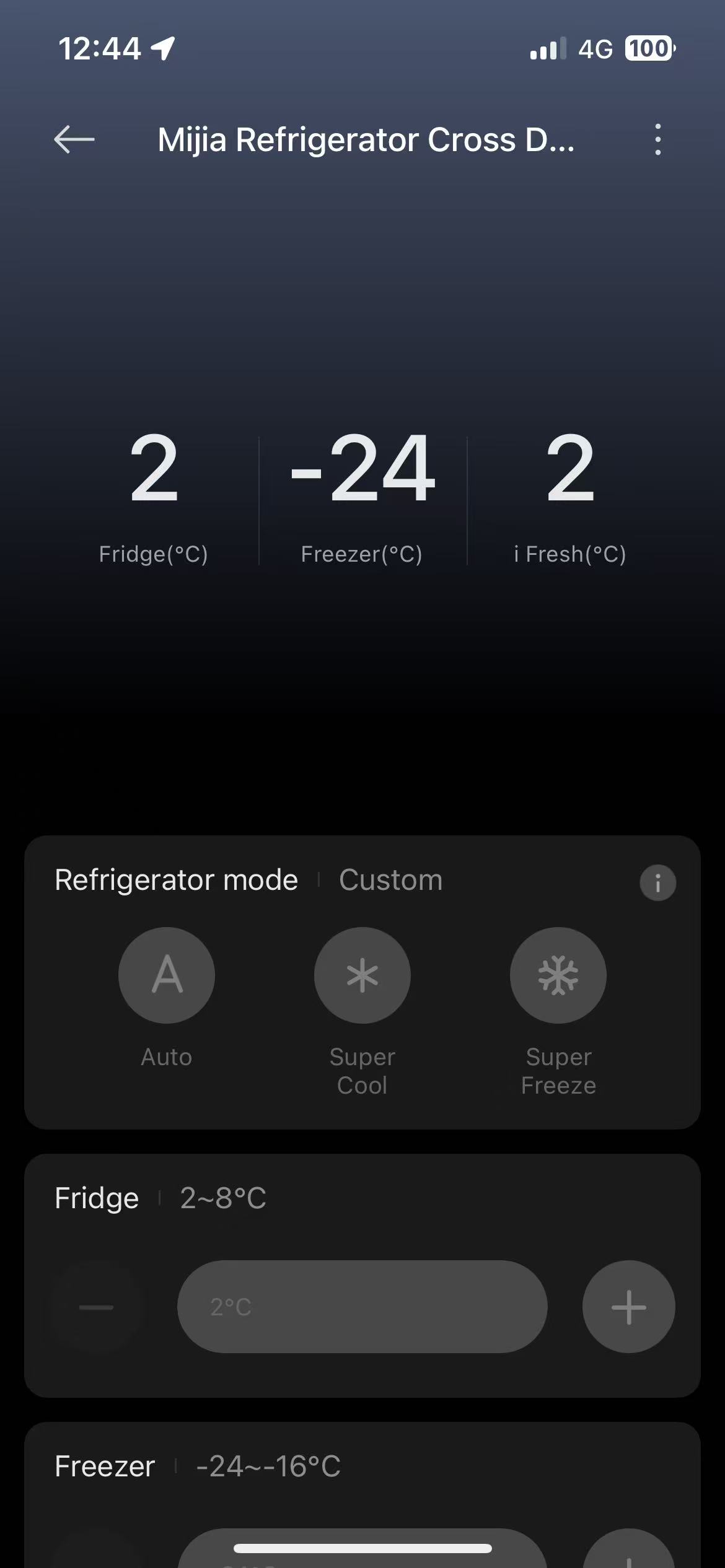 2. Di antarmuka pengaturan Mi Home/Xiaomi Home APP, Anda dapat menyesuaikan mode lemari es dan suhu.